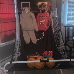 • Quick Fold & Perfect Fit: The foldable design saves 75% space and is easy to move. This electronic double shootout sport game is ideal for rooms with 8-foot ceilings, facilitating the flight and movement of the ball around the game. Requires two adults to assemble the frame, net, and backboard components. Comes with complete accessories, including 4 basketballs, 2 basketball hoops, and an air pump.