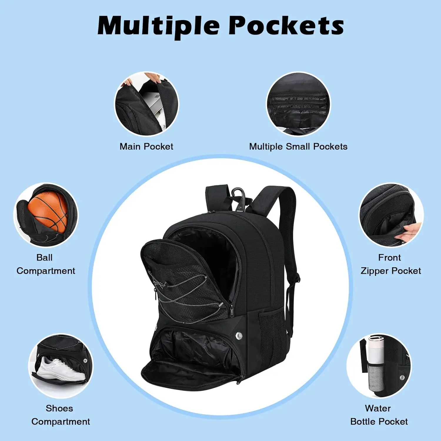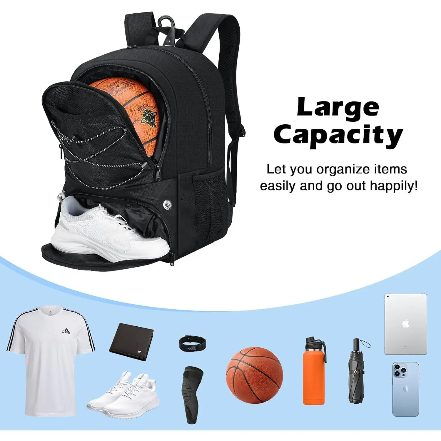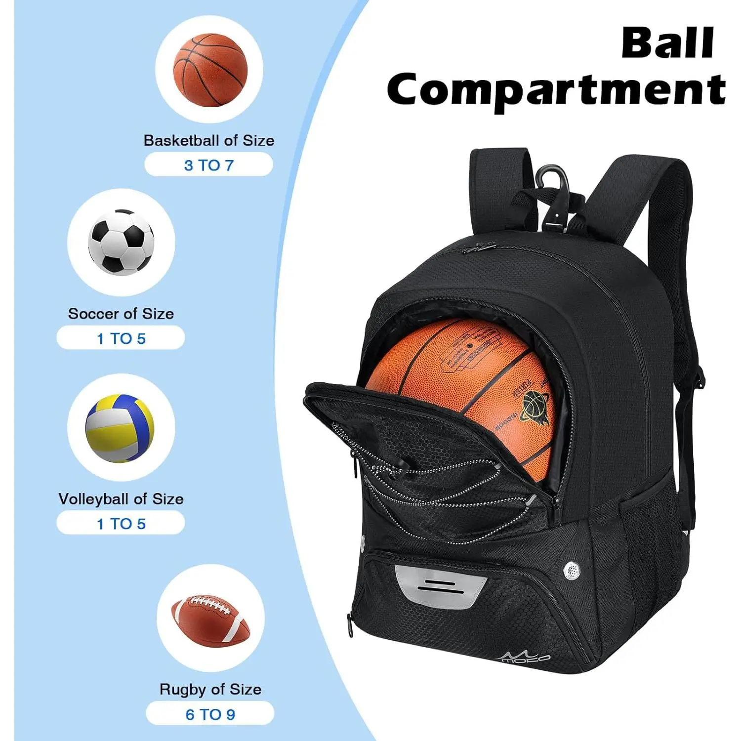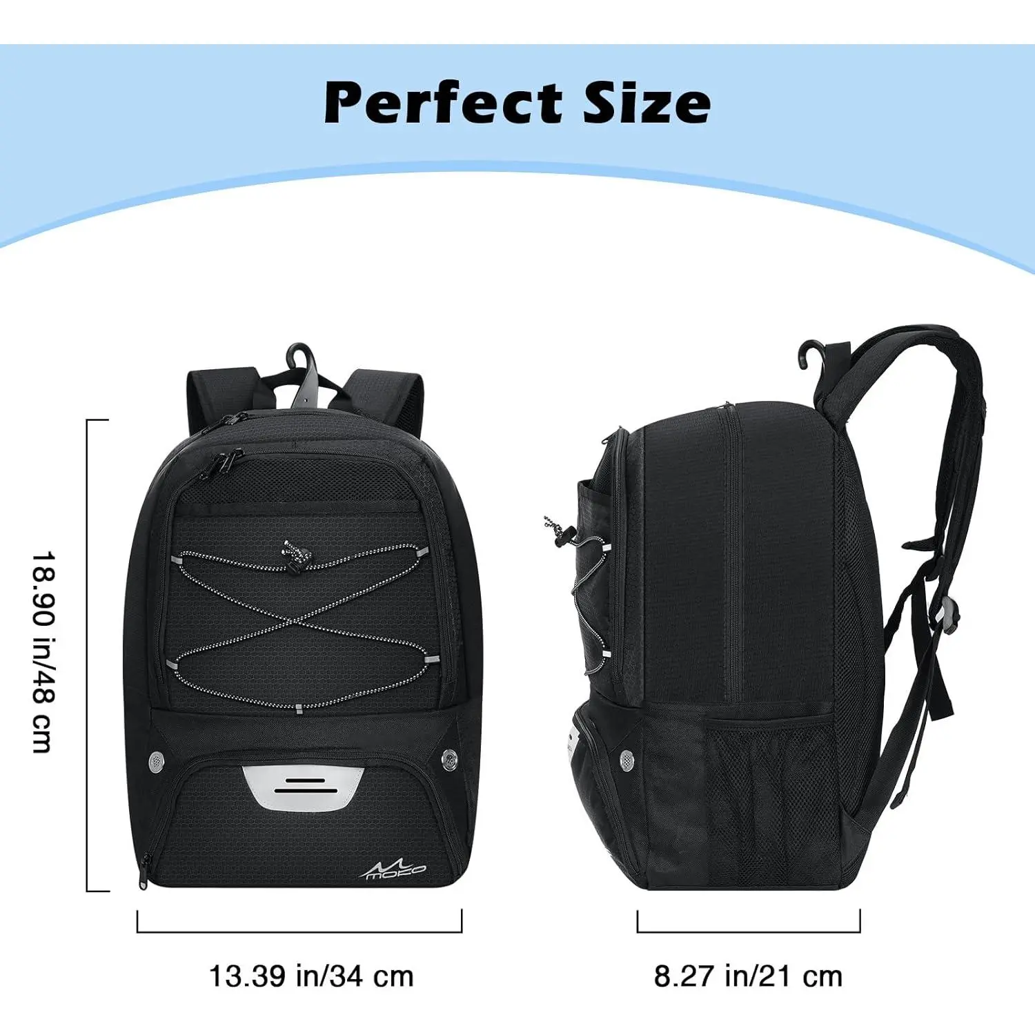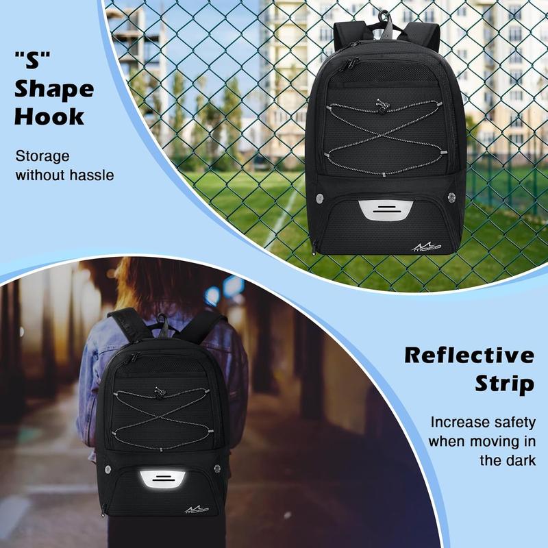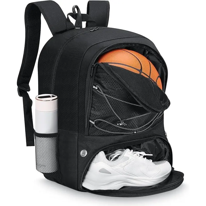 Designed for ball sports enthusiasts, the backpack includes a vented ball pocket on the outside to store basketballs, footballs, volleyballs, and more. Perfect for basketball, soccer, volleyball, fitness, and cycling.
