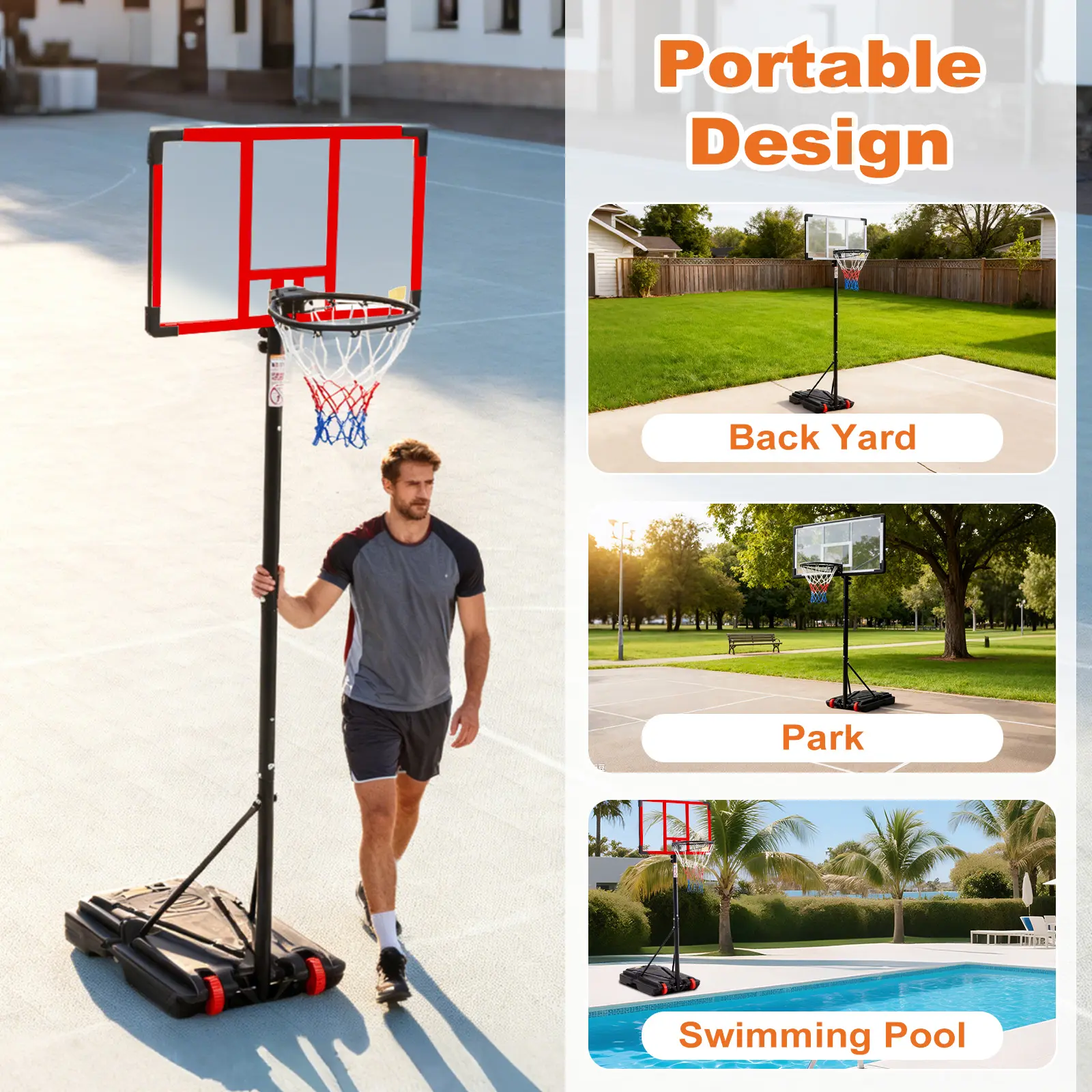 ·MORE STABLE & DURABLE - The Basketball Stand comes with a sturdy stand and a upgraded base to which more water or sand can be added to ensure stability and durability. It also comes with wheels for easy transport and setup
