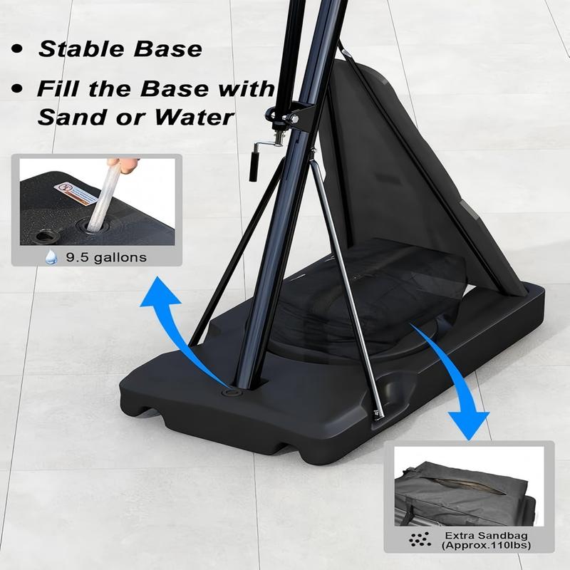 ·High-strength polyethylene base: Requires water and sandbags (about 110 pounds).