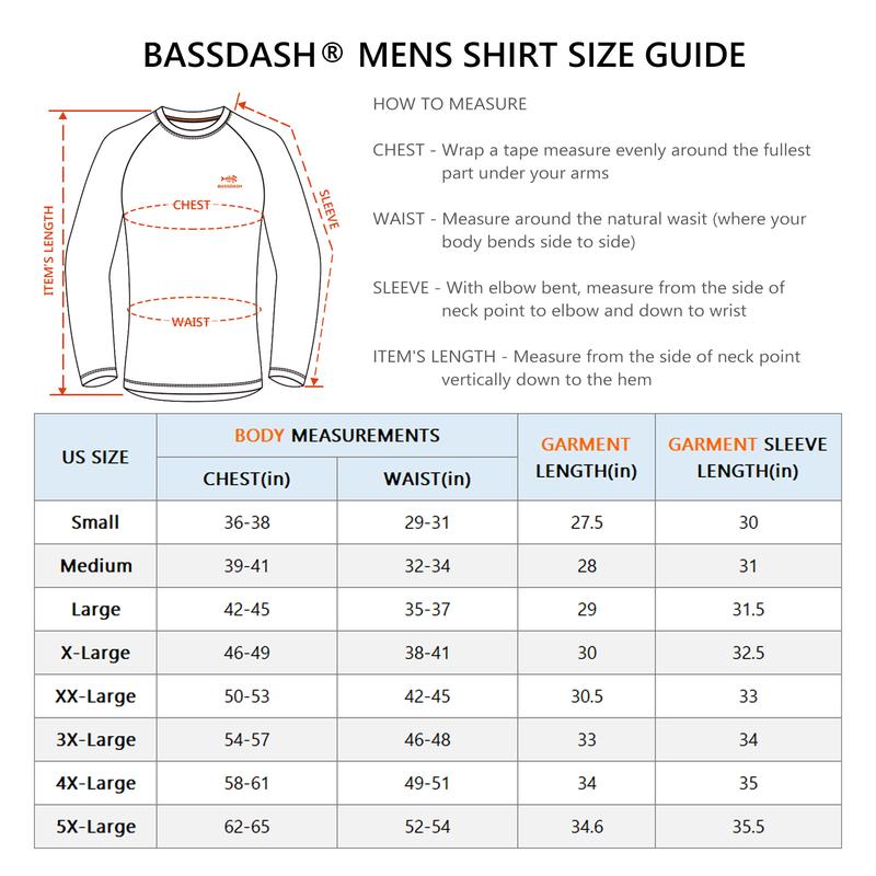 BASSDASH Men’s Lightweight Camo Hunting Shirt UPF 50+ Sun Protection Long Sleeve Hiking Fishing Performance Tee Mesh Panels