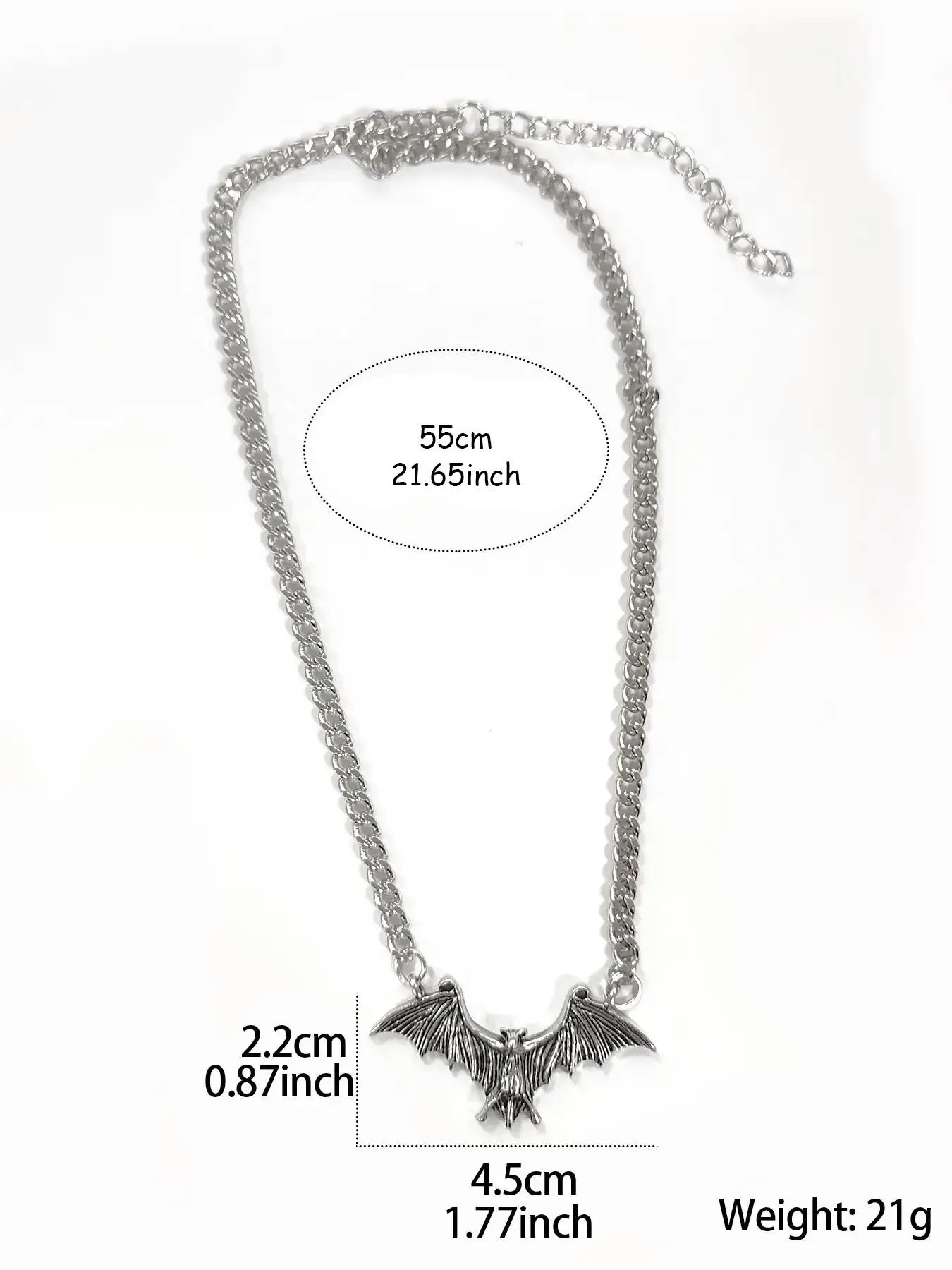 One of the bat’s ears + chain came broken and the chain is not the same as advertised in the photos. The chain I received is much thinner and appears longer. I ended up fixing the chain myself and re-attaching the part of the chain that broke off.
