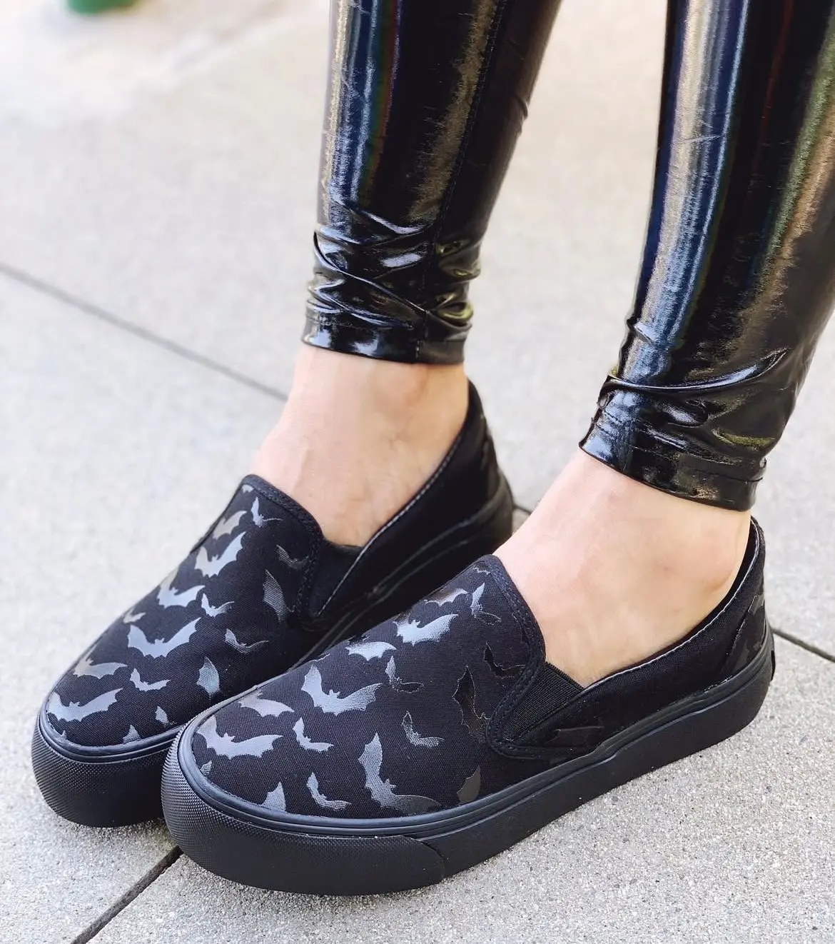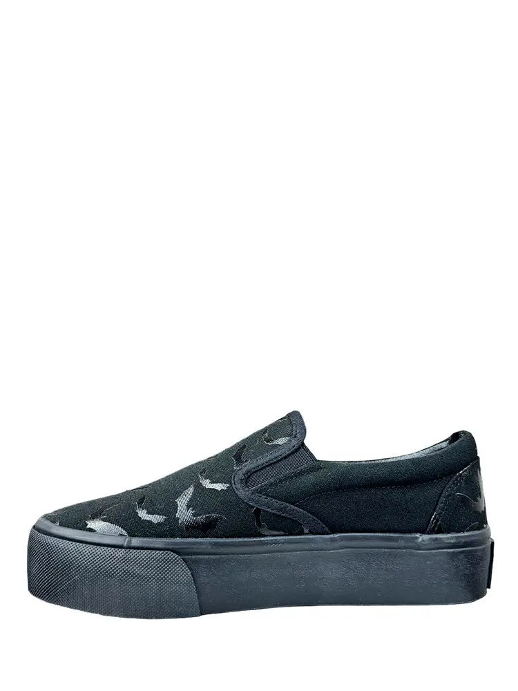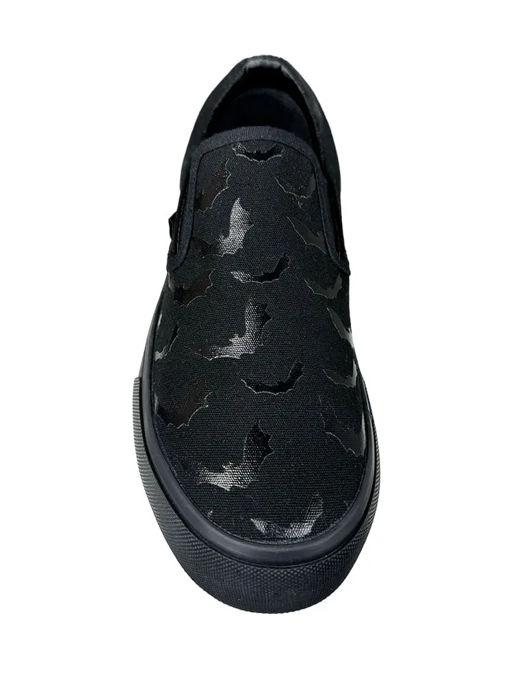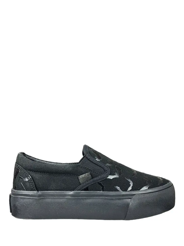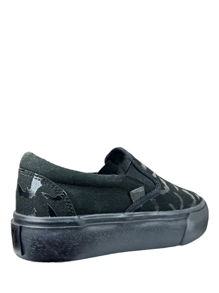 Slide into BATs shoe. The black canvas upper features a black printed bat detail and is accentuated by black elastic goring. The black rubber outsole provides a sleek and stylish finish.
