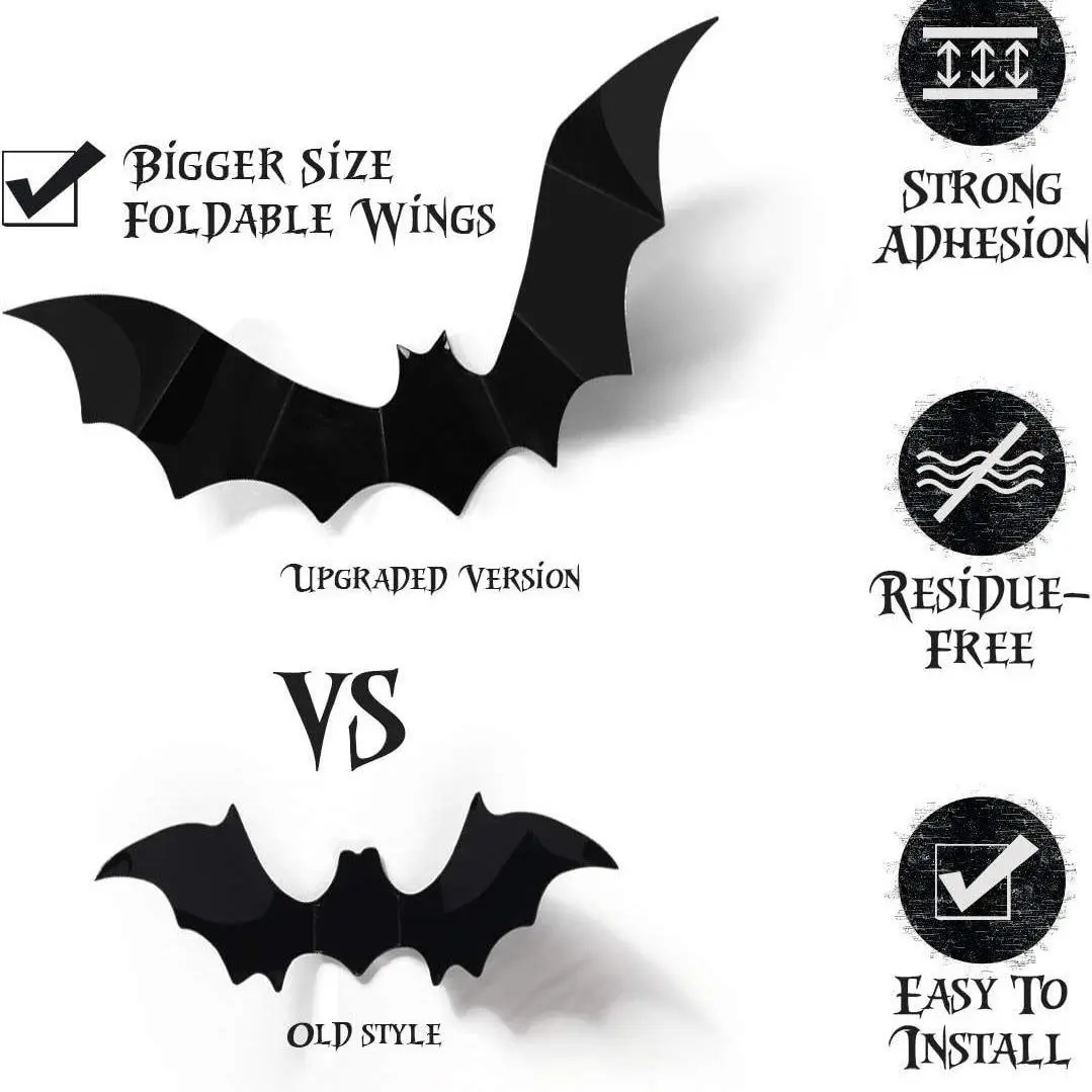 The perfect little spooky touch my place needed. The wings fold nicely, and the mounting tape that comes with the bats seems like it won’t damange my walls!
