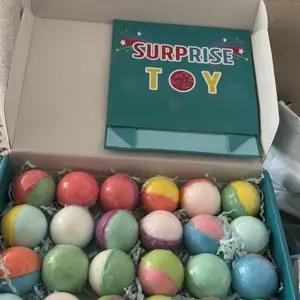 ·【24 Pack Bath Bombs For Kids】Each kids bath bombs has different animal inside. Including 24 different jungle and sea animals, 12 different scents, bring different surprises to your child's every bath. Comes with a storage box, no need to fold, collect surprise in a nice way to prevent loss.