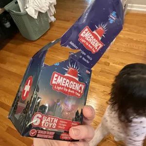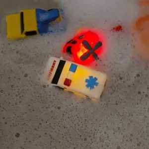These light-up toys add a sensory boost to any bath. The emergency cars light up, flashing multicolored sensory lights when they touch water. It's a fun sensory adventure for kids! 🎨