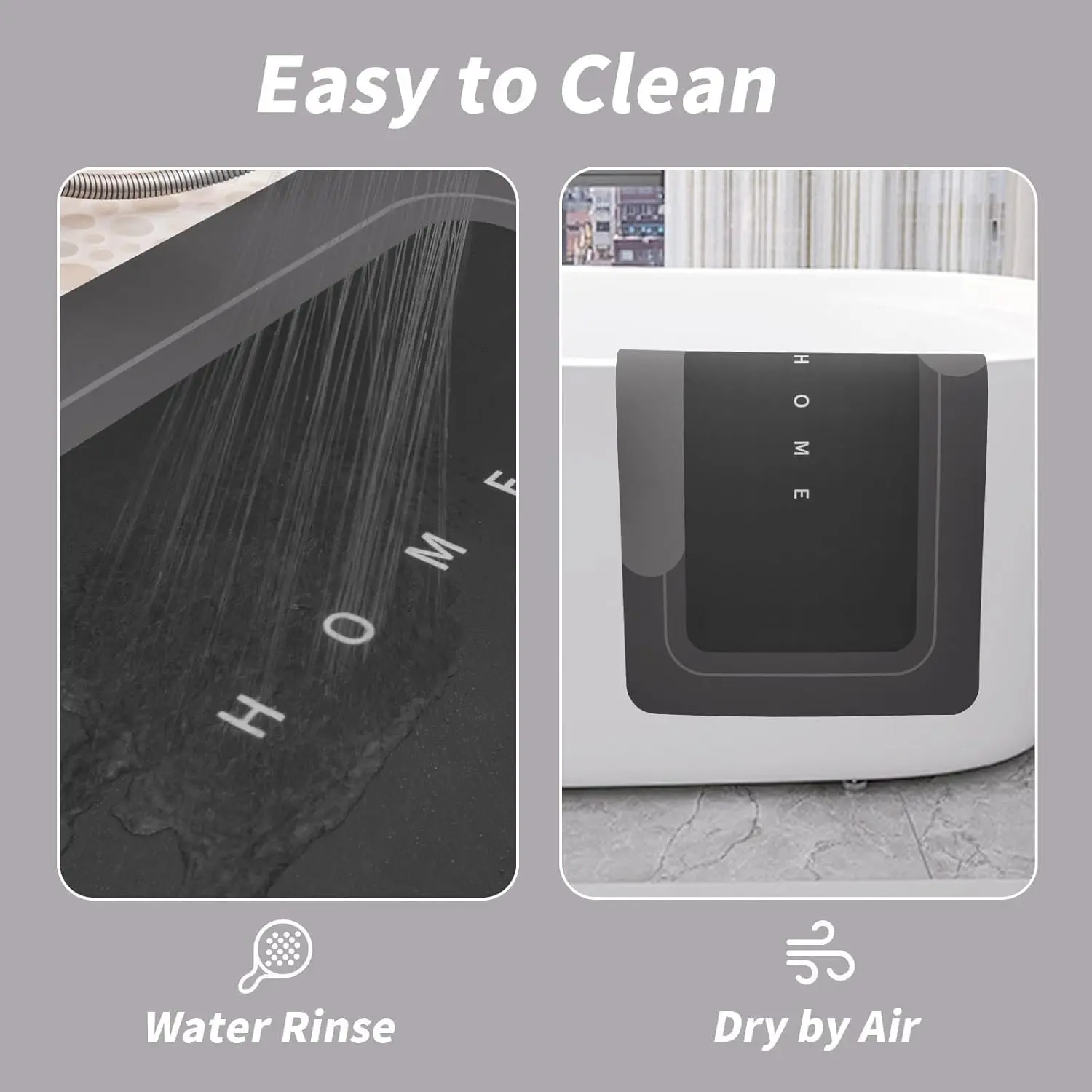 ·The surface of the bathroom mat is smooth, so it can be wiped gently with a cloth or washed with a shower head to remove dust and dirt. The floor mats are also machine washable, eliminating the risk of mold and damage.