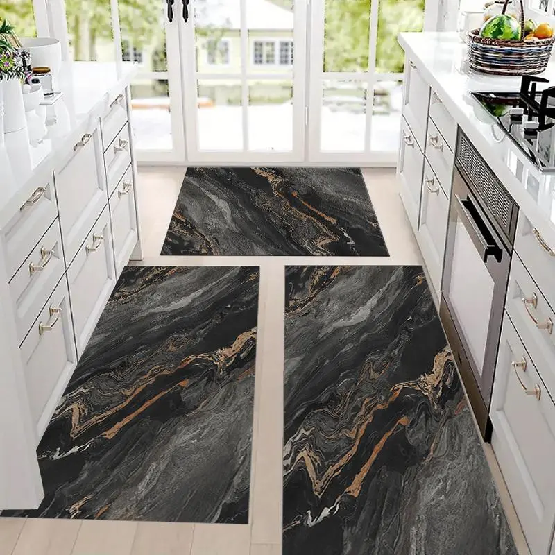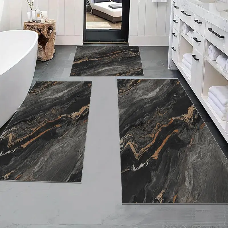 Marble Pattern Bath Mat, 3 Counts/set Non-slip Absorbent Bathroom Mat, Soft Comfortable Bathroom Mat, Suitable for Bathroom, Shower, Laundry Room, Bedroom, Living Room, Bathroom Rug Set