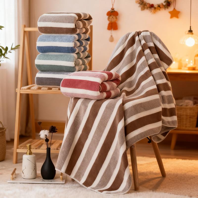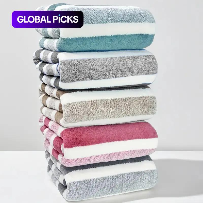 Juegos de toallas de baño con patrón de rayas, 5 unidades/juego de toallas de microfibra absorbente suave, toalla de secado rápido para baño, hotel, salón, spa, gimnasio, artículos para el hogar