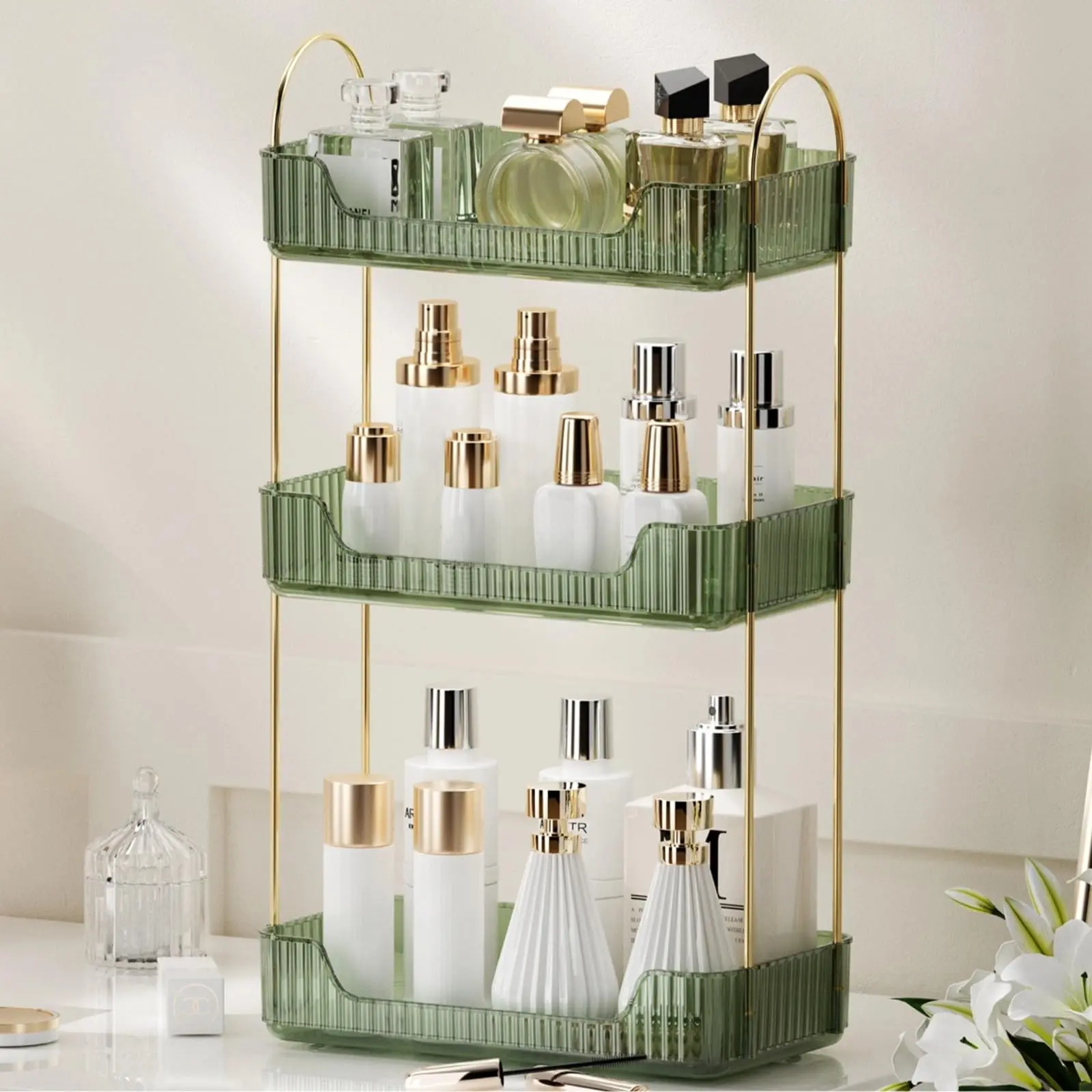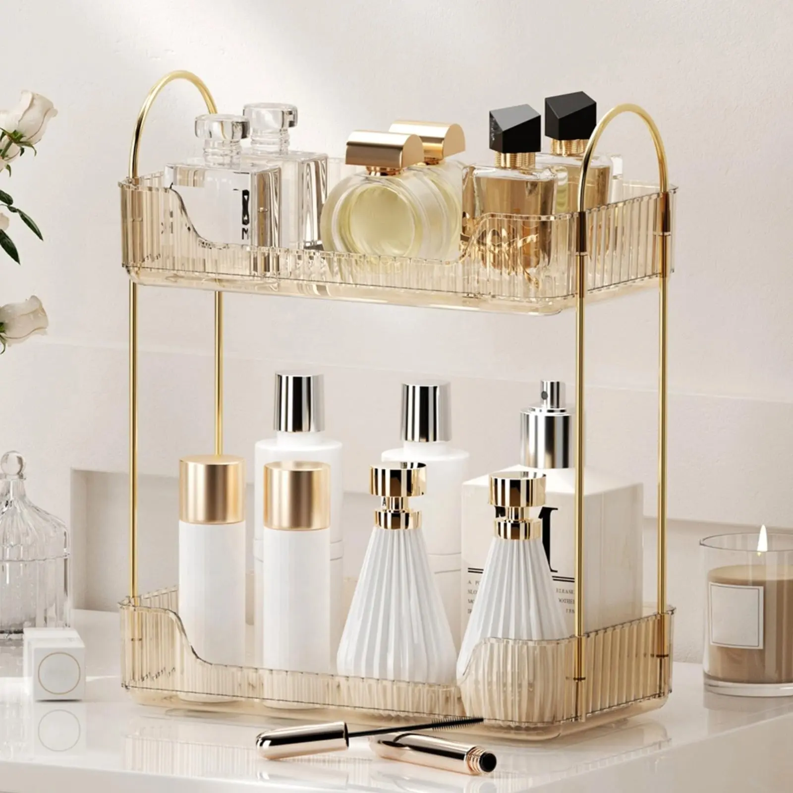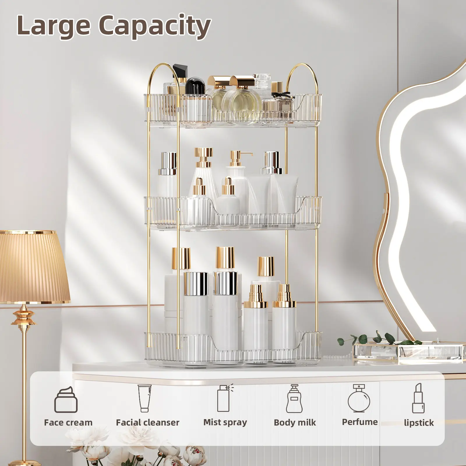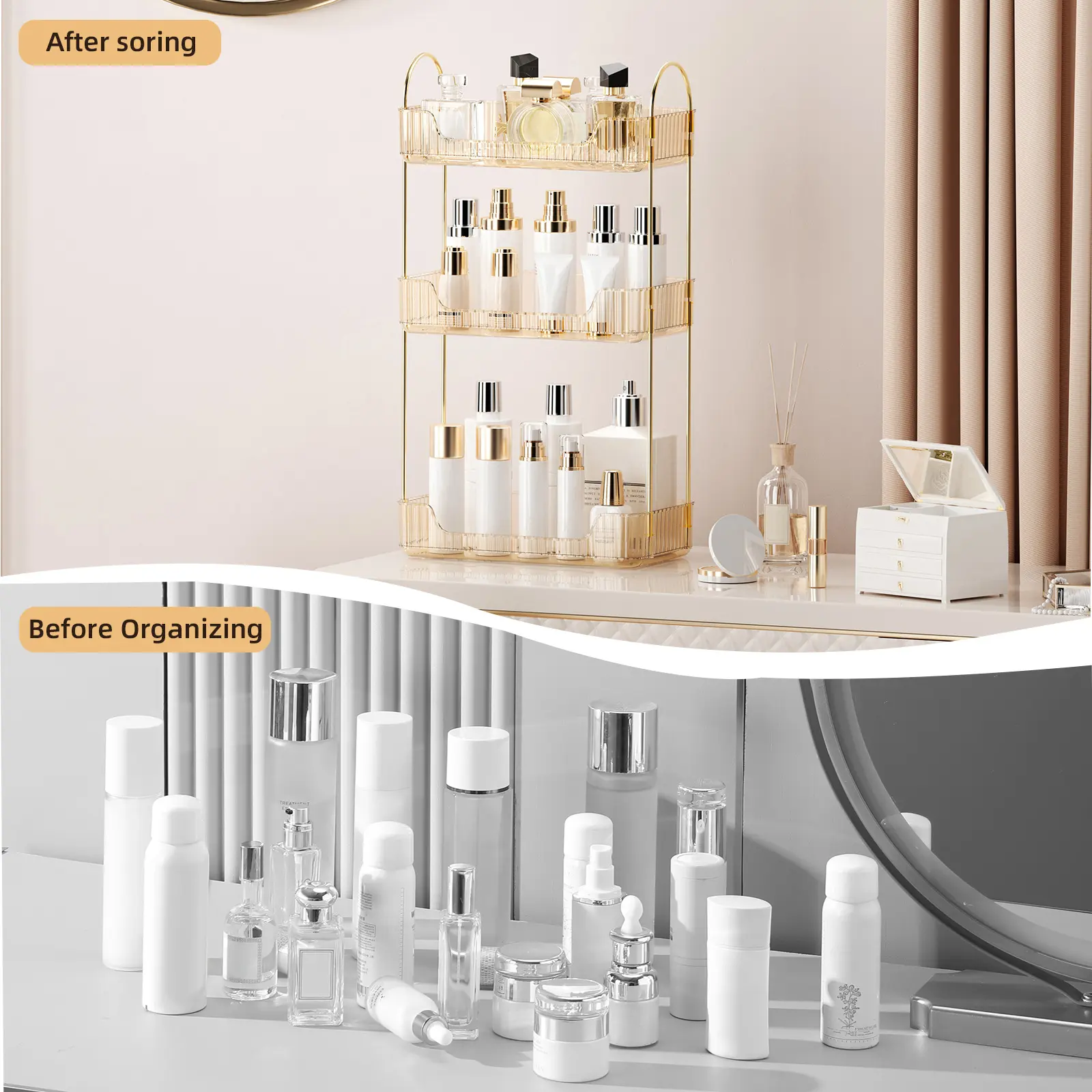 MULTI-PURPOSE ORGANIZER: Keep your bathroom countertop organized with this multi-purpose makeup organizer, large cosmetics skincare shelf organizer, perfume organizer, and exquisite vanity organizer.