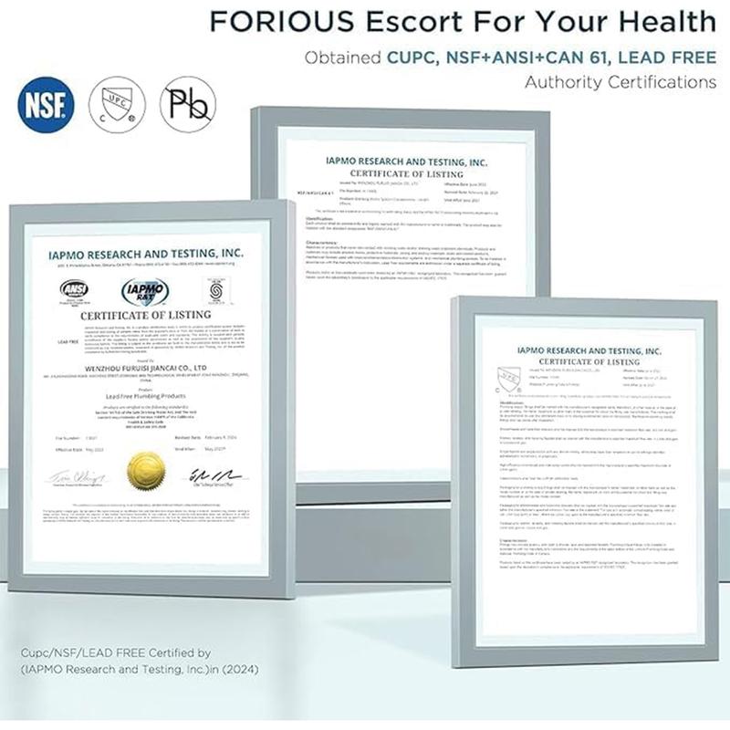 FORIOUS pays keen attention to quality, with a finish that endures a 24-hour acid salt spray test and includes anti-rust treatment. This material reduces stains and odors, preserving the faucet's beauty over time.