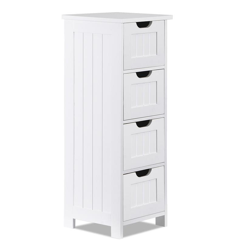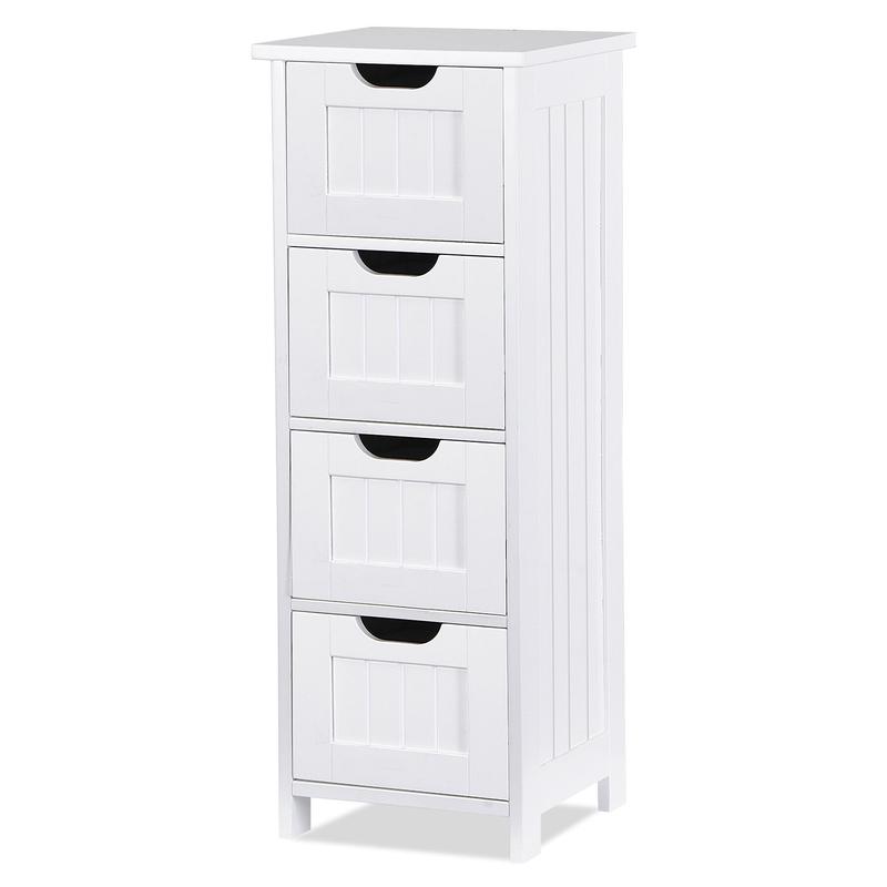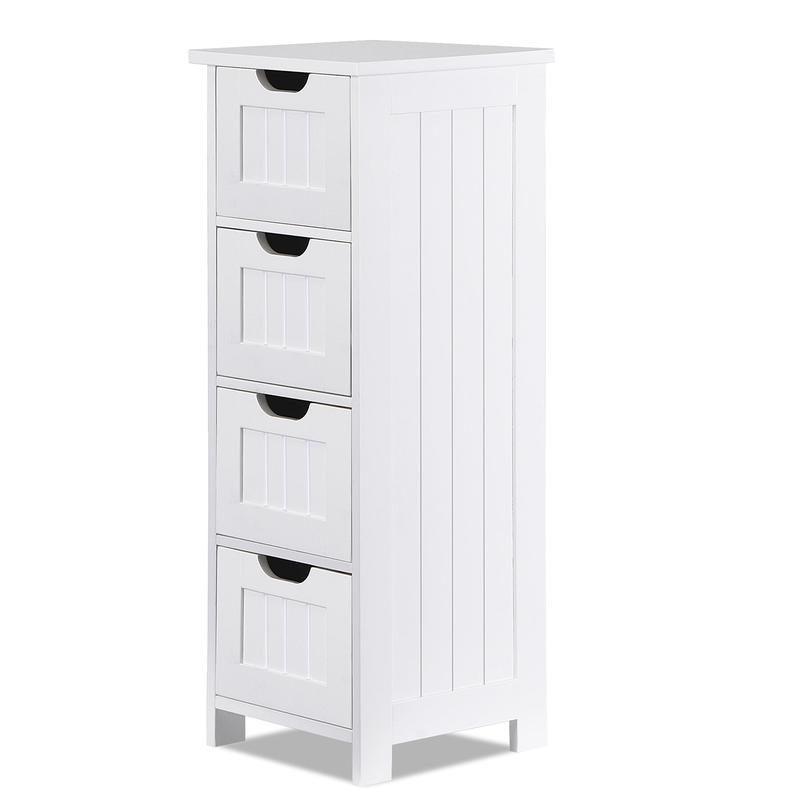 With a spacious vanity square tabletop for versatile use, this bathroom floor cabinet offers 4 separate drawers for easy organization, which pulls for comfort and style. It's perfect for organizing bathroom essentials and a great addition to hallways or living rooms for extra storage. Homeowners looking to declutter and organize their space or individuals in need of a stylish and functional storage solution would be the main applicable groups.