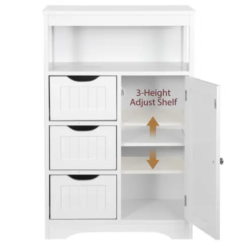 Adjustable Shelf: The inner shelf of the small cabinet can be moved up and down according to the different sizes of the items. The 3 various heights are available for your convenience.