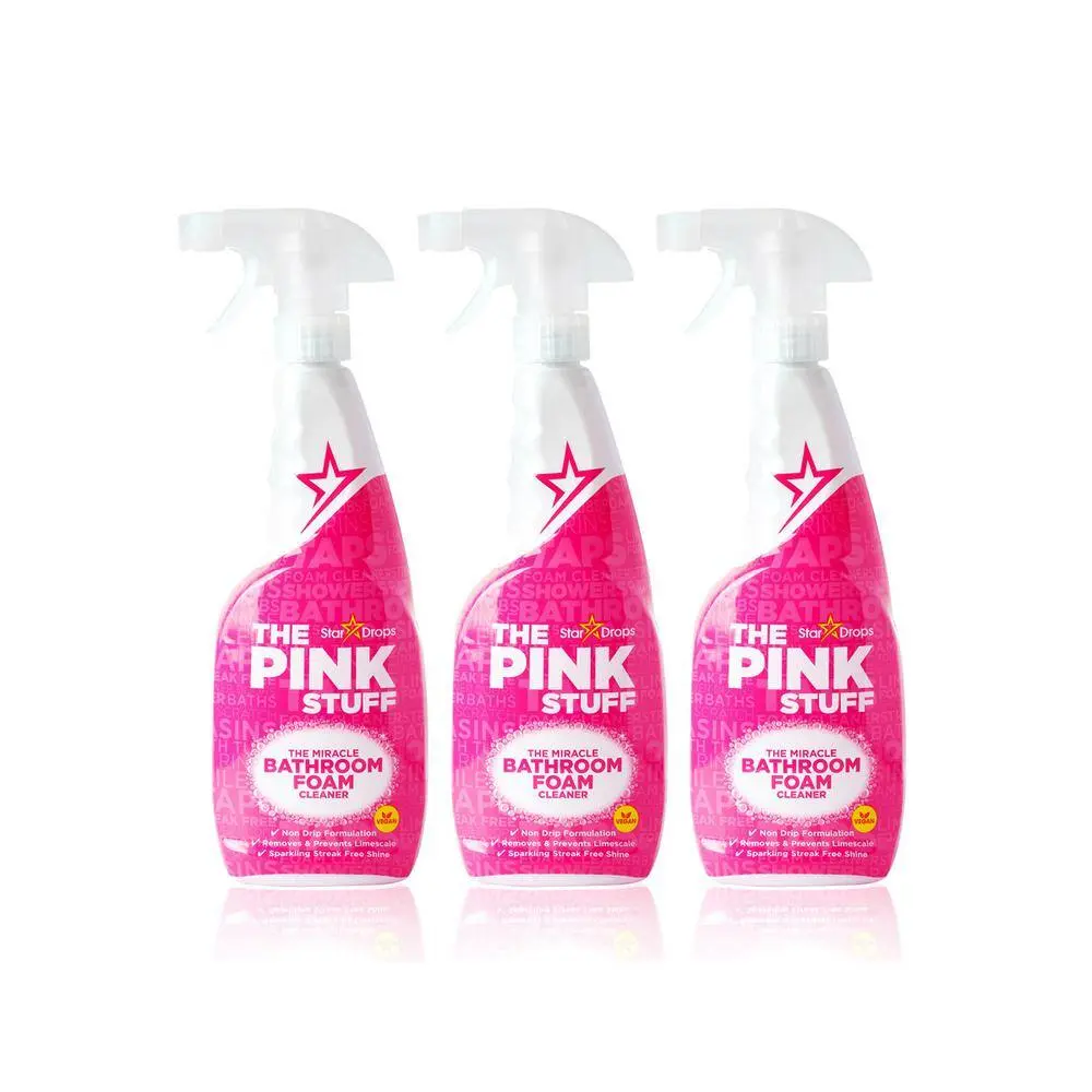THE PINK STUFF Miracle 750 ml Bathroom Foam Cleaner (3-Pack), Foam Bathroom Cleaner, Limescale Preventer, Non-Drip Foam Cleaner, Clinging Bathroom Cleaner, Soap Scum Remover, Sparkling Bathroom Cleaner, Streak-Free Cleaner.