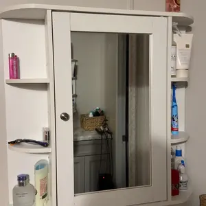 Amé este producto. Si tienes un baño pequeño viene espectacular para guardar tus productos y a la vez usar el espejo 😍