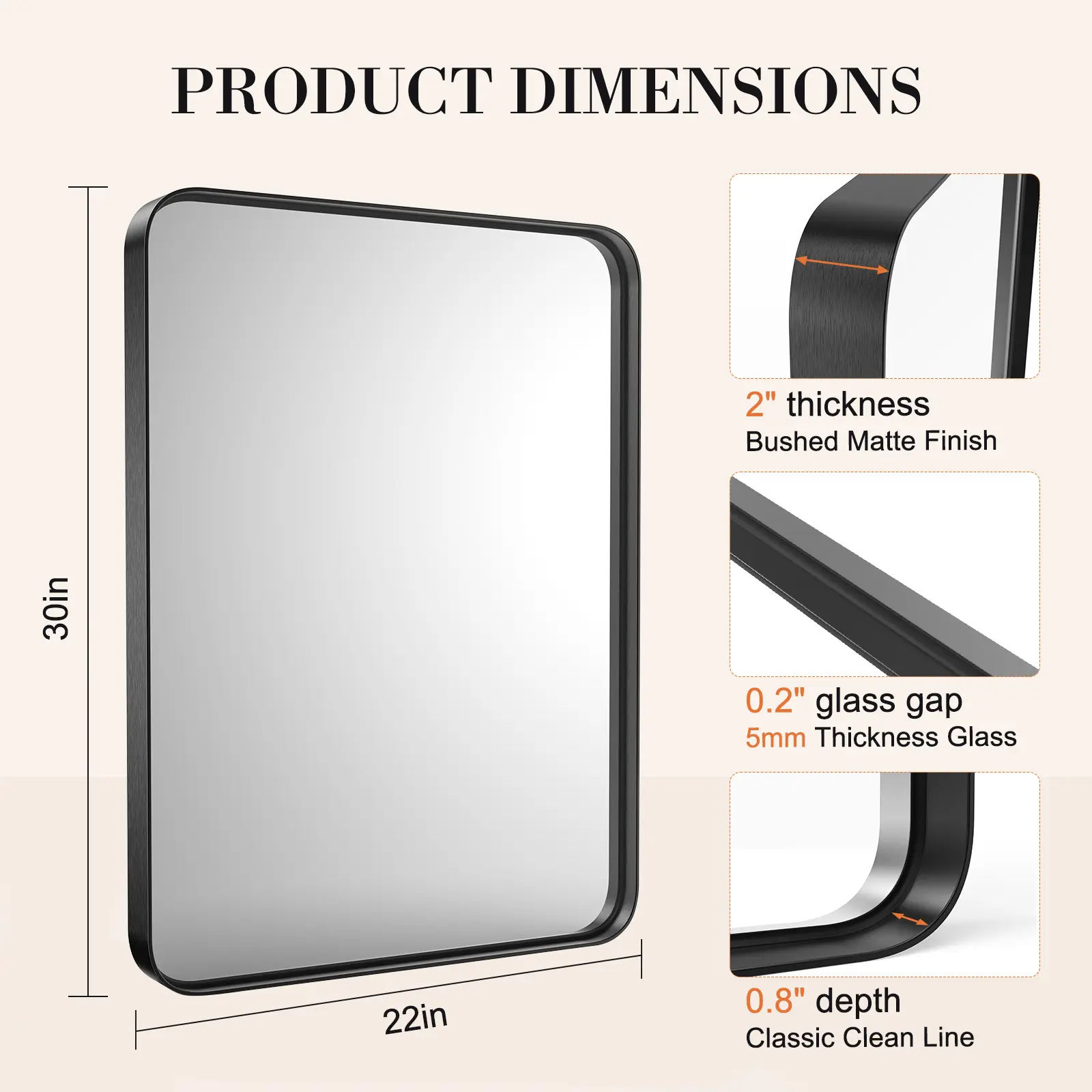 ·【Shatterproof Tempered Glass】Unlike other fragile mirrors, all black framed mirrors are made of 4 mm tempered glass, which is 5 times stronger than ordinary mirrors. Will not splinter into pieces even when shattered by super force. Safe and easy to clean.