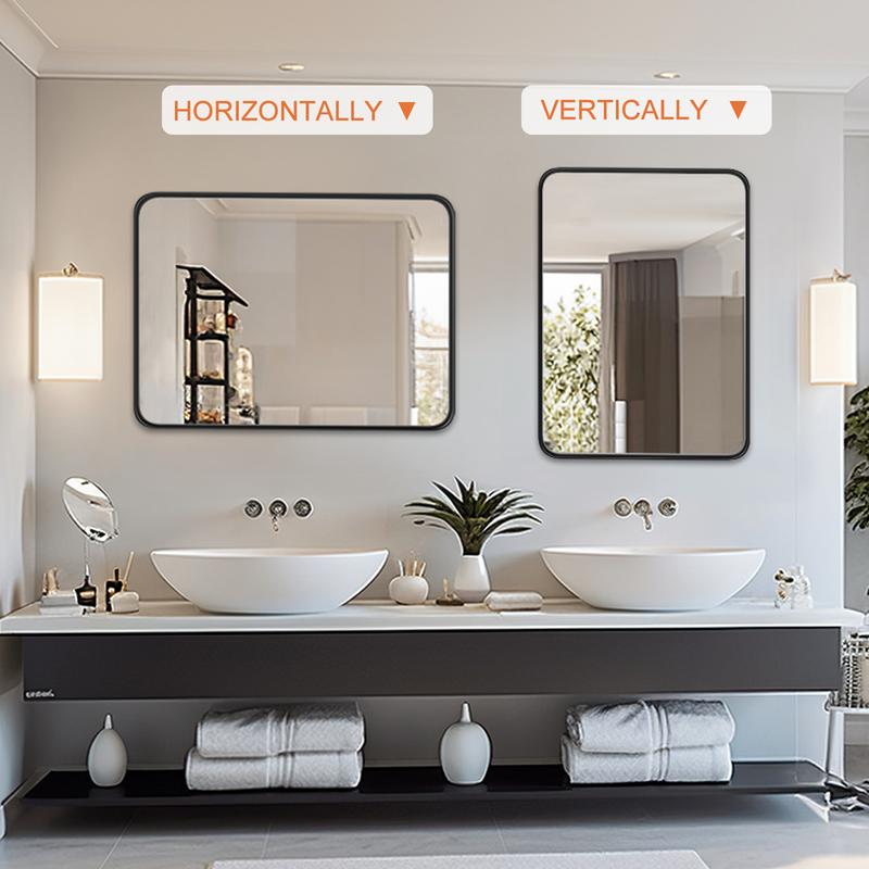 ·【Matte Black Aluminum Alloy Frame】With a round corner rectangular metal frame, the matte black mirror looks elegant and generous. The anodizing process makes the metal frame waterproof and rustproof, durable and non-deformation, and with delicate brushed texture, making the rectangle mirror look more textured.