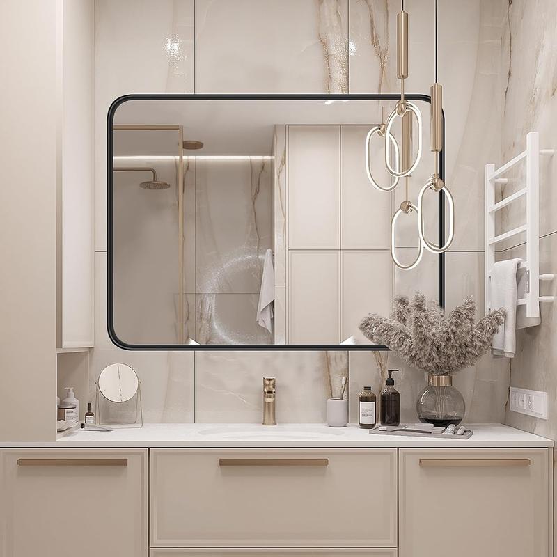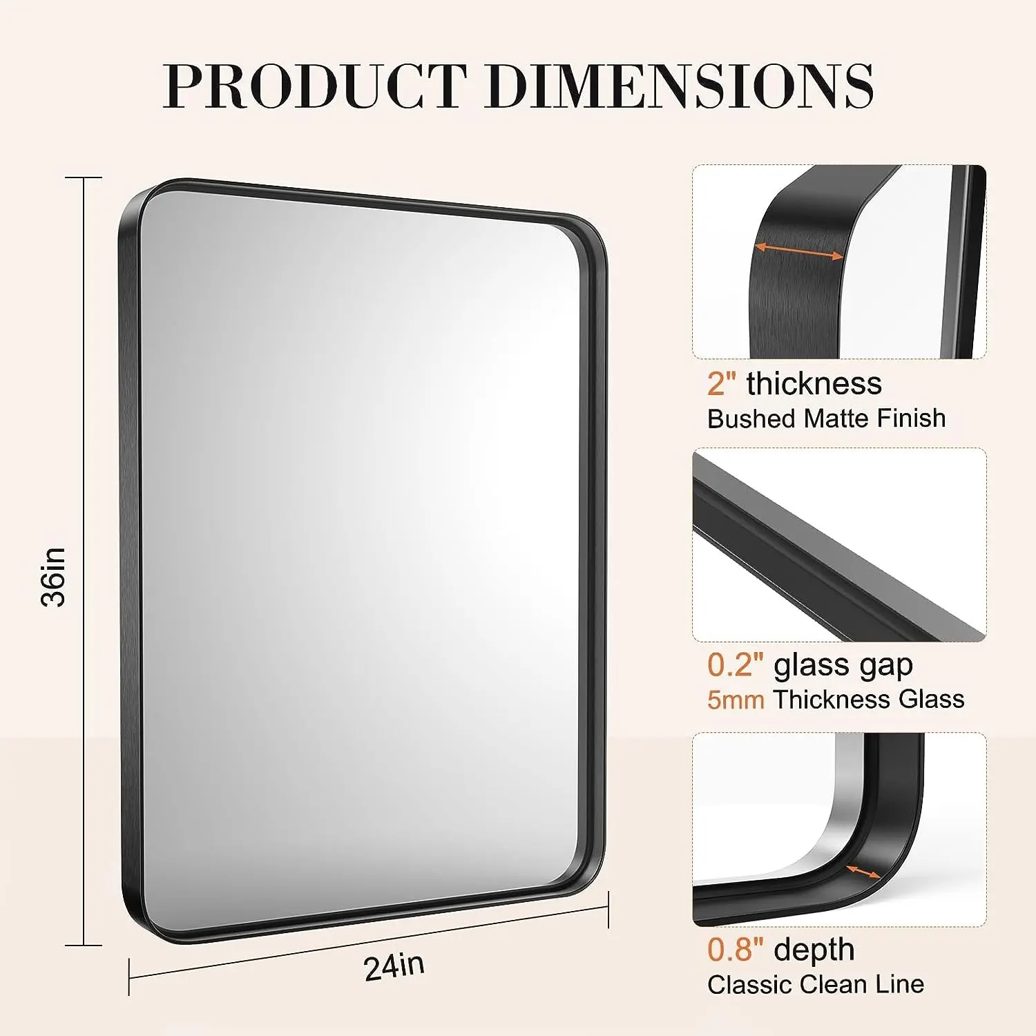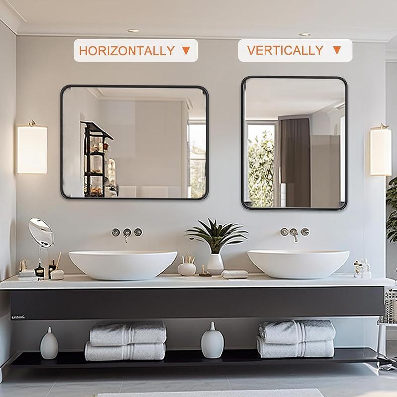 【Waterproof and Non-Rusting】The bathroom mirrors for over sink,In terms of the outer frame are made of high-quality aluminum alloy and thickened baking paint, brushed metal material. Safe and durable, waterproof, and non-rusting.In the decoration space, black bathroom mirror can not only reflect the modernism of home but also perfectly combine the classical style of home.
