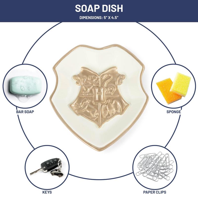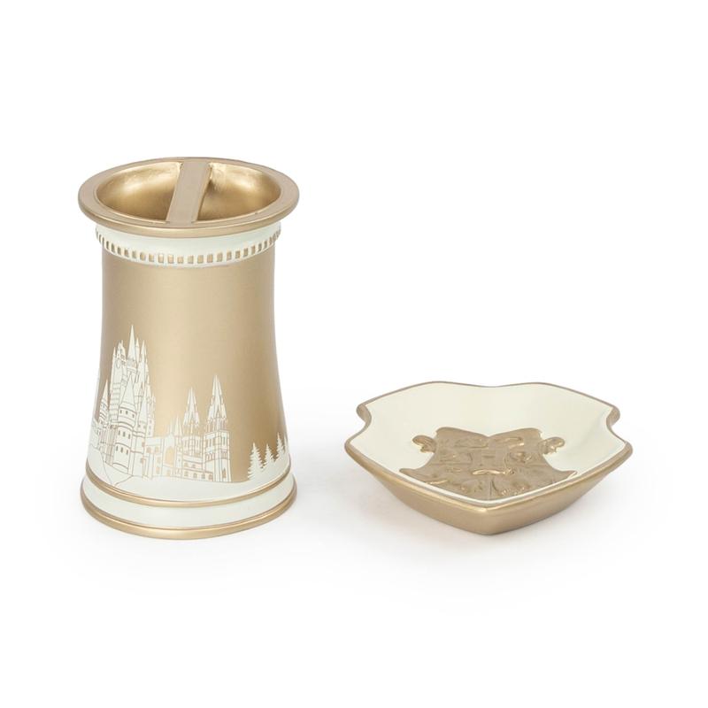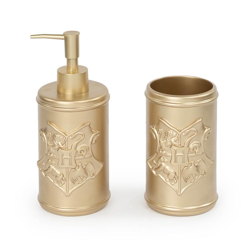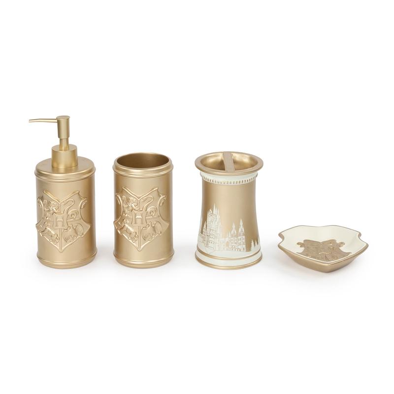 5. Jay Franco Harry Potter Hogwarts Crest Bathroom Organizer 4 Piece Set Soap Dispenser Soap Dish