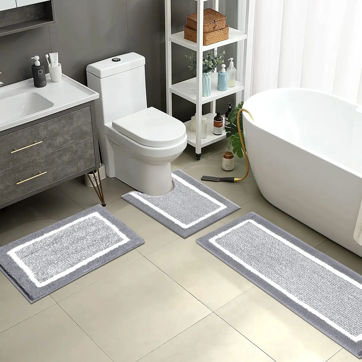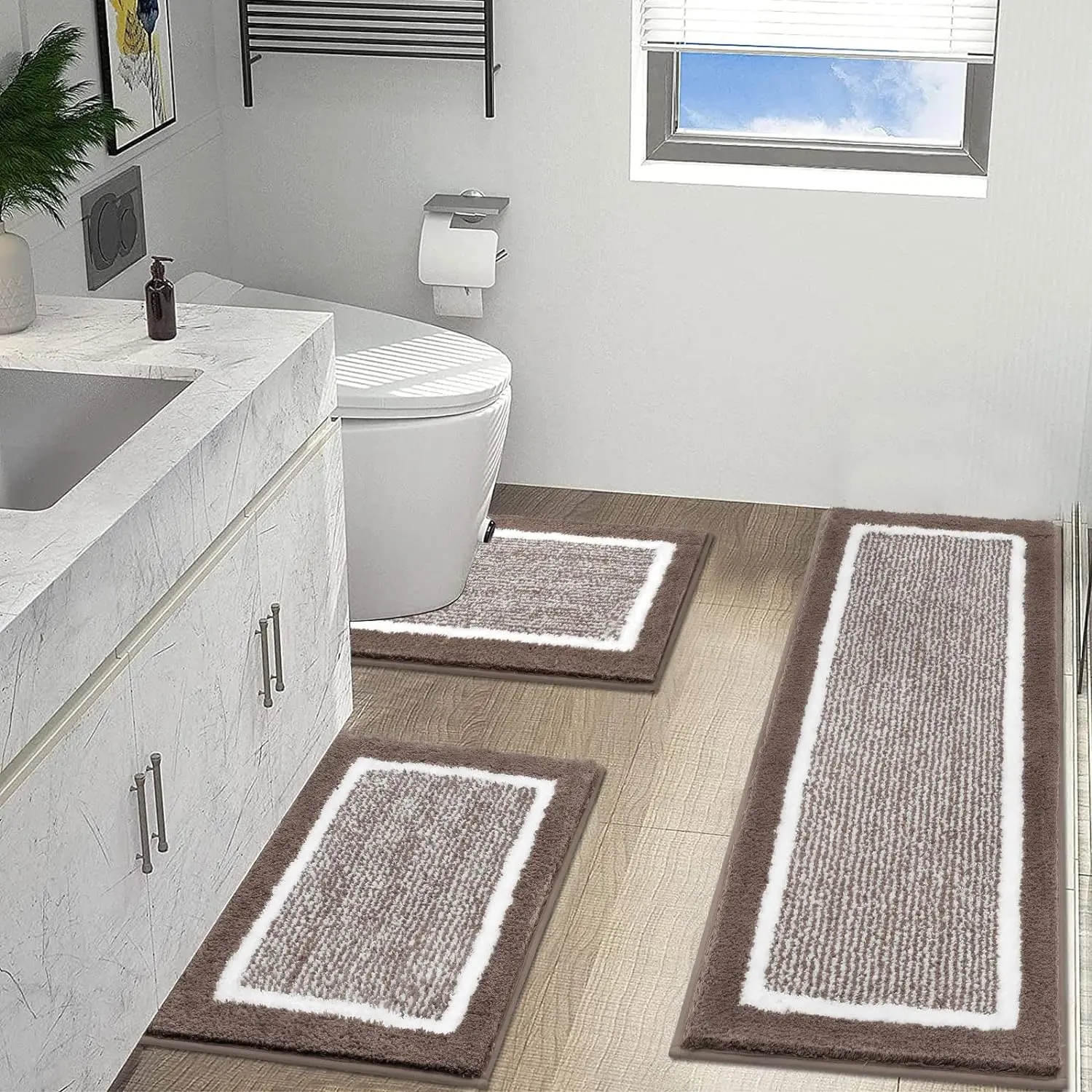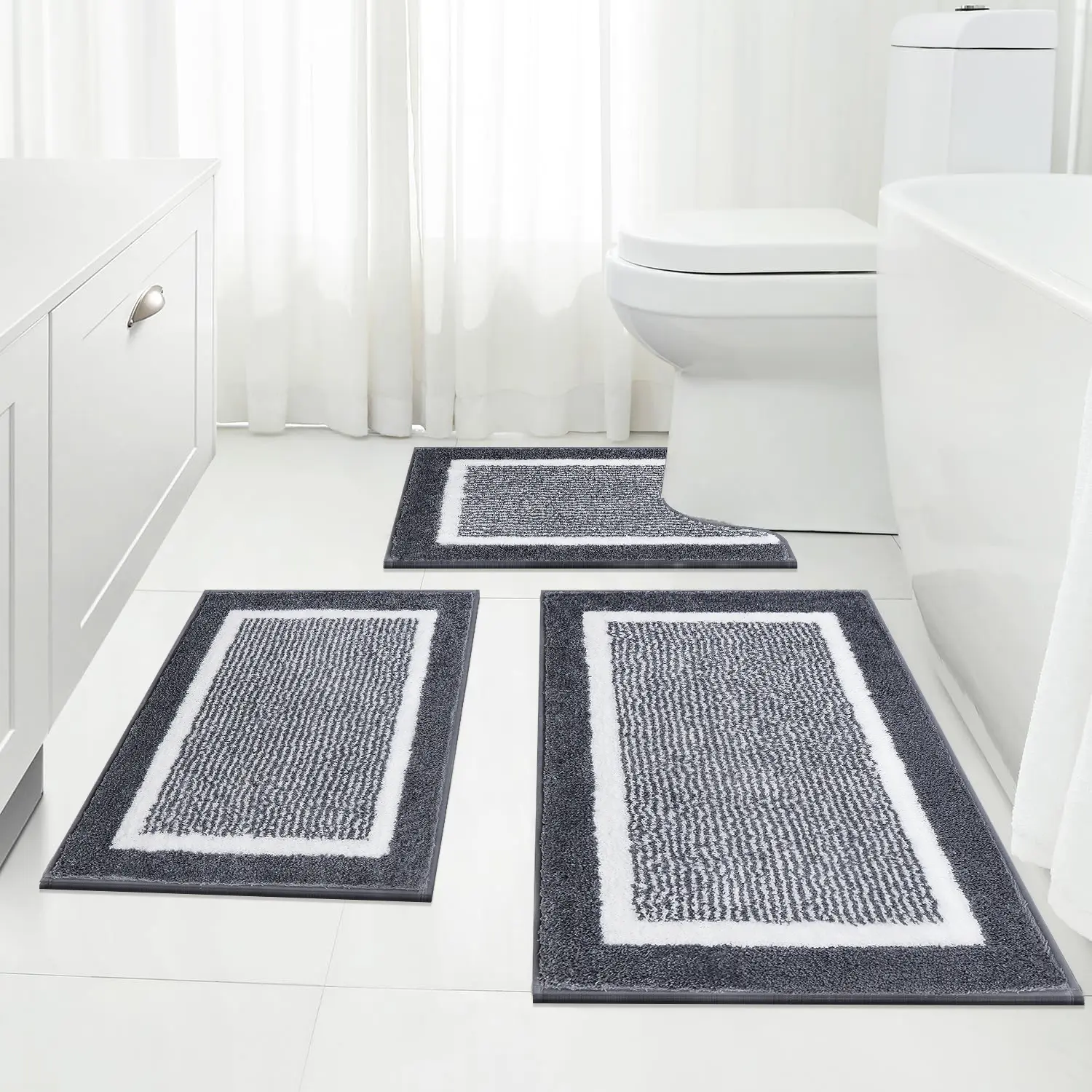 ·Bath Rugs and Runner Set with Perfect Size: We got two sizes (18"x26"+18"x48"+20"x24"U-Shaped) 3 PIECES / (18"x26"+20"x32"+20"x24"U Shape) 2 PIECES and multiple colors for your choice, perfect for your bathrooms, living rooms, kitchen,bedrooms or the entrance to your home. Besides, it also can be used as the bed for your pets.