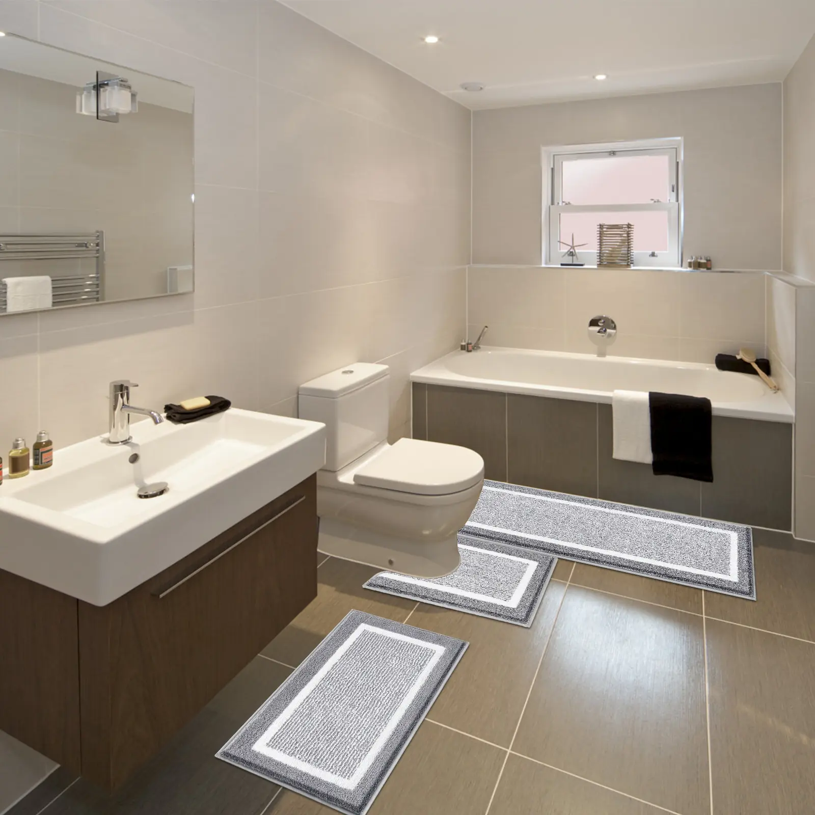 ·Bathroom Rugs Sets 2 Piece: LOKHOM also provides 2 pieces bath mats for bathroom (18"x26"+18"x48") without U-Shaped rug which are also perfect for bathrooms, Kitchen, entrance indoor, washrooms, bedrooms, living rooms, spas, and wherever you need bathroom floor mats.
