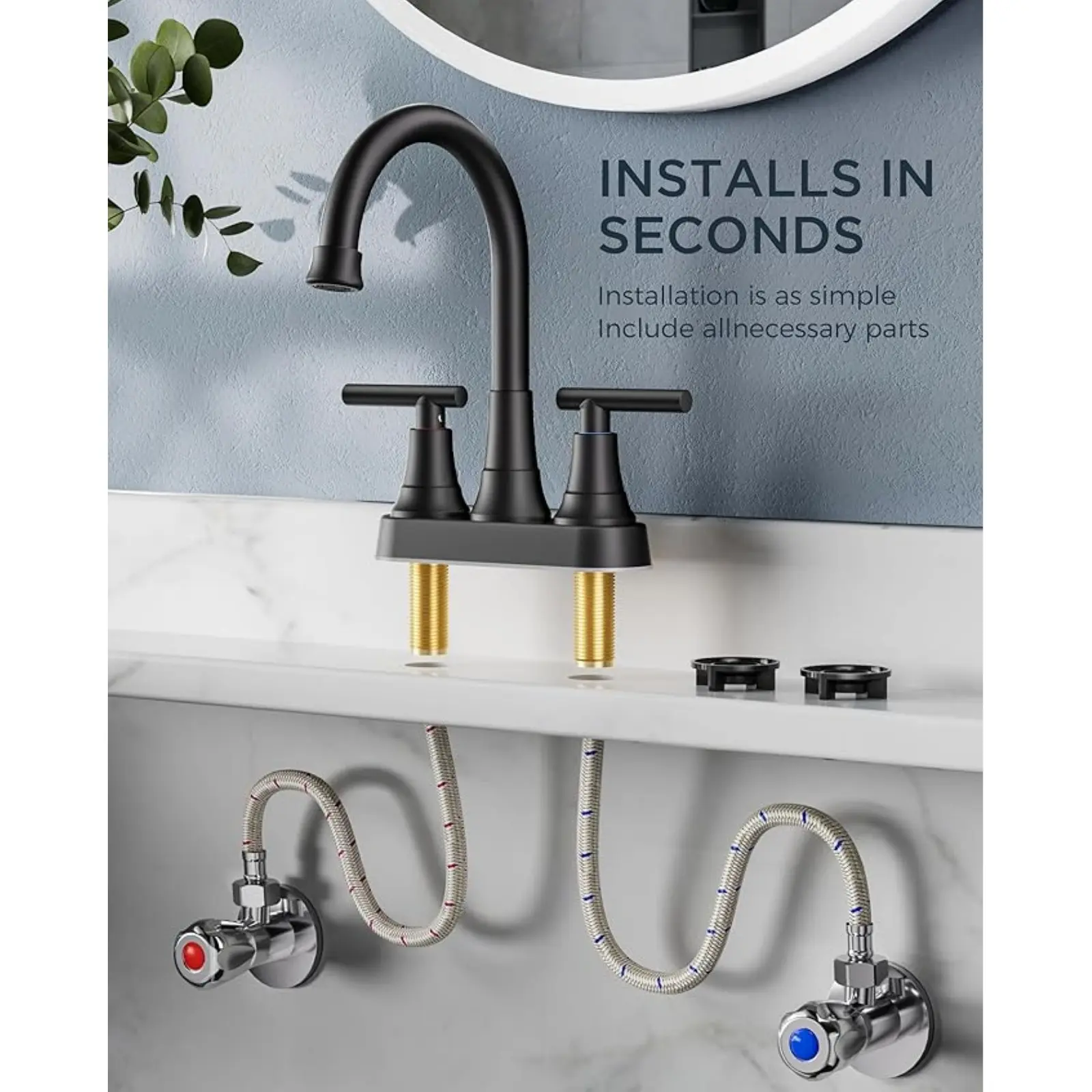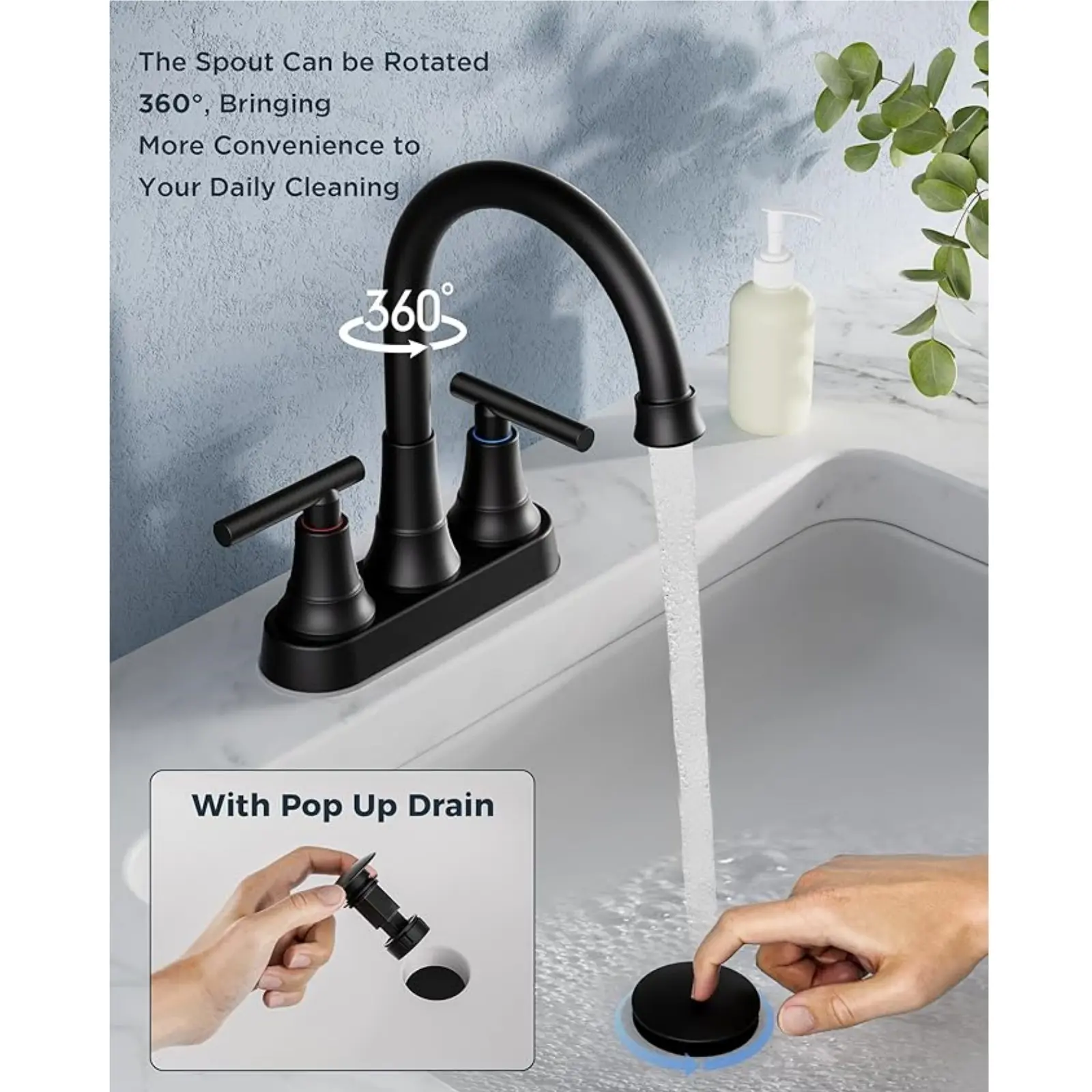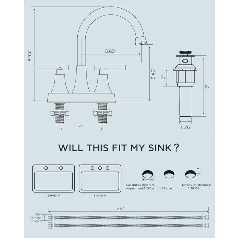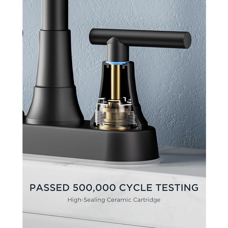 【User-Friendly Installation】This 4-inch centerset faucet fits 2 or 3-hole sinks, simplifying installation without needing a plumber or special tools. Follow our detailed video guide for a quick and easy setup.