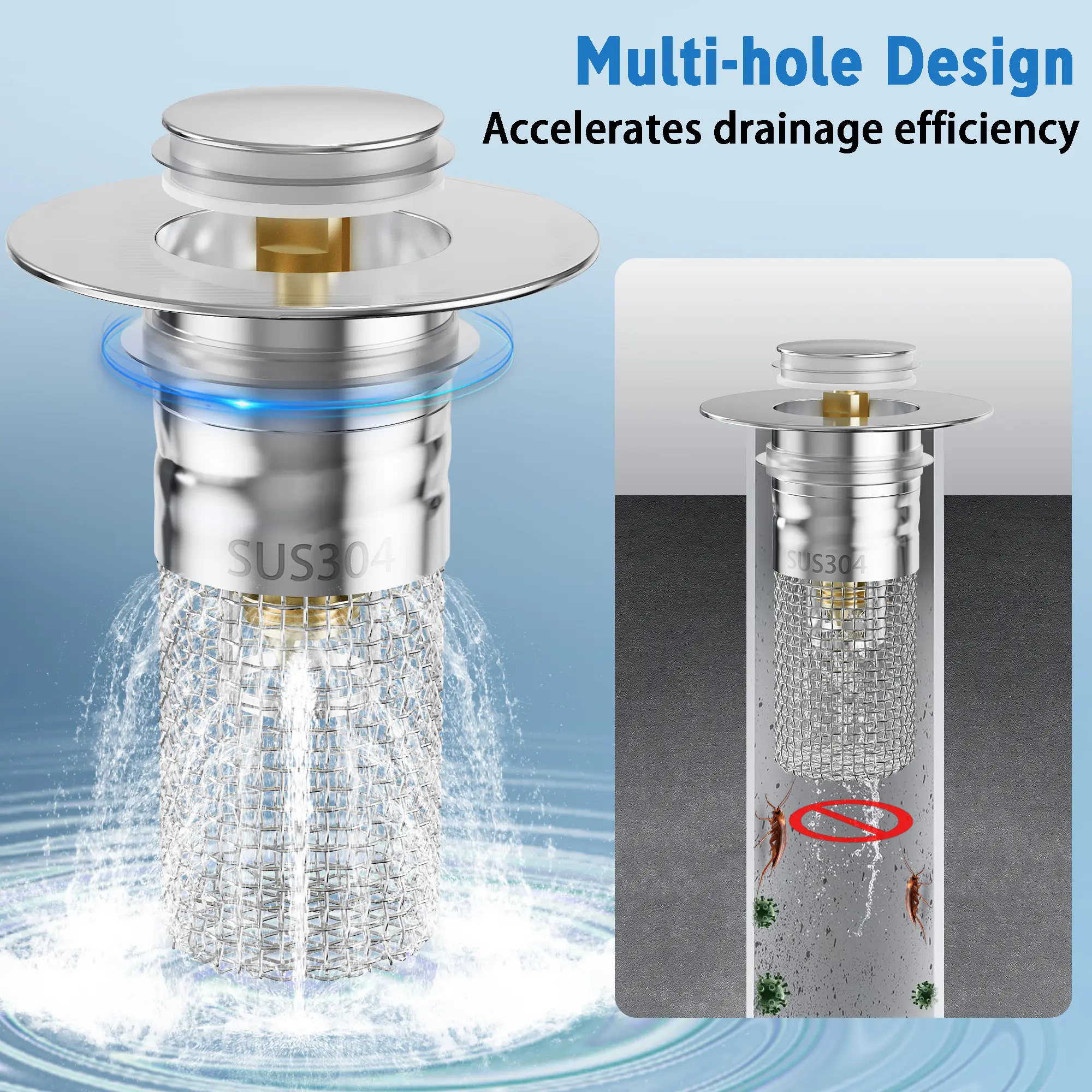 ·Innovative Design: Combines a sink pop-up stopper and sink strainer
