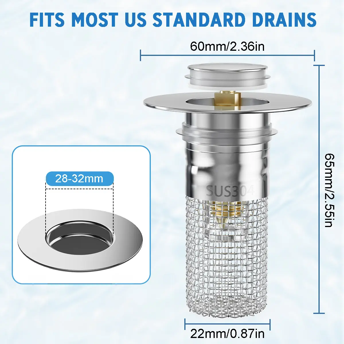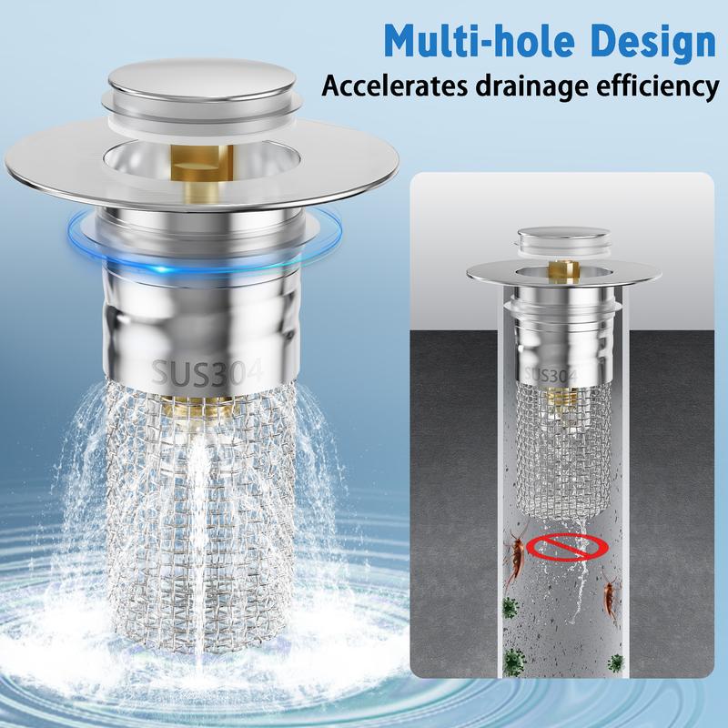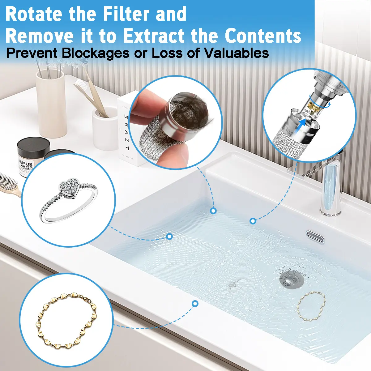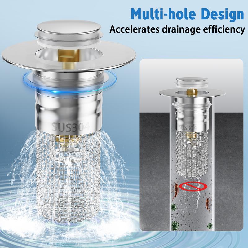 ·Anti-Clogging Basket: Inside the pop-up sink drain filter