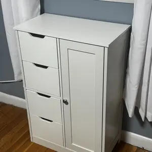 So cheaply made. Definitely not worth the price. It claims to be waterproof but I doubt it will last inside a bathroom. IKEA furniture is 10x better than this. Pieces were covered in fiberglass. Some pieces had scratches and looks like it was covered up with a black marker. Do not recommend..