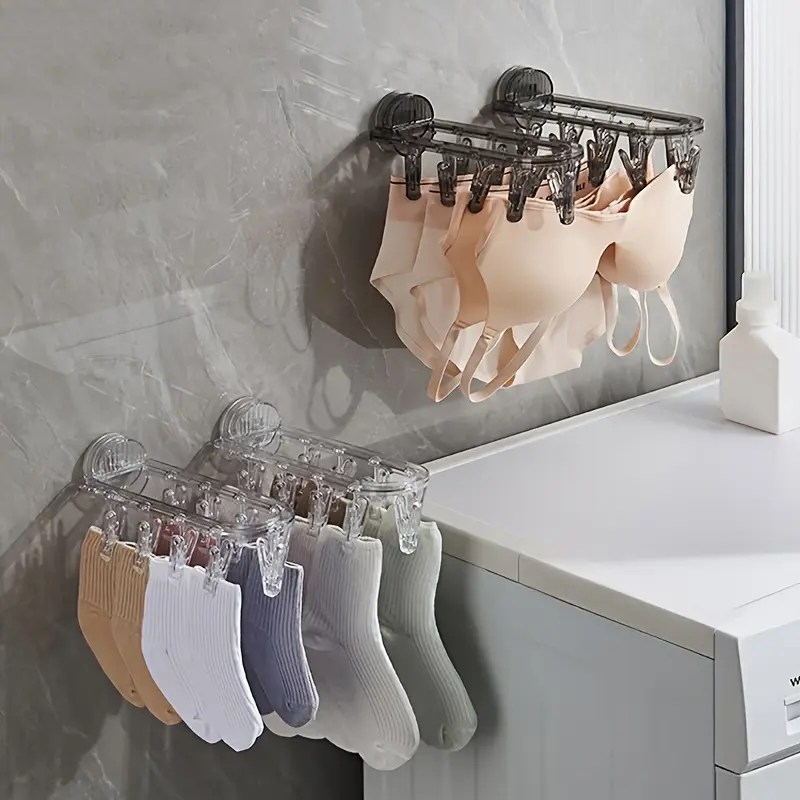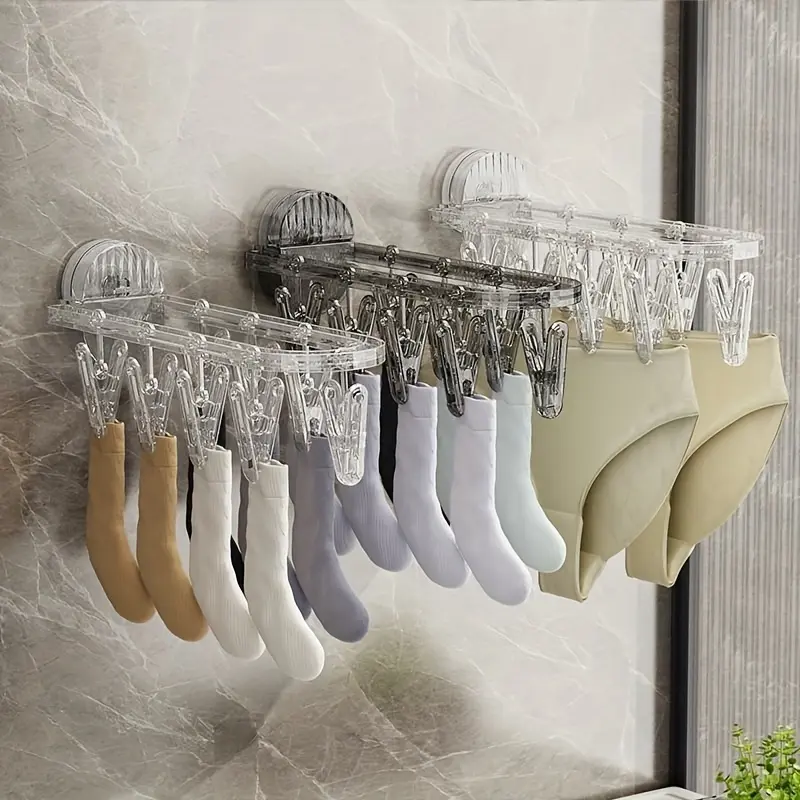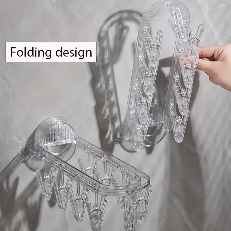 Bathroom Suction Cup Drying Rack, Folding Socks Drying Rack, Household Clothes Rack Multi-Clip Drying Socks Artifact Balcony Glass Socks Clip, Laundry Drying Rack