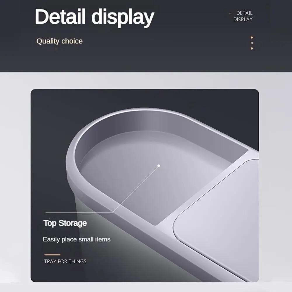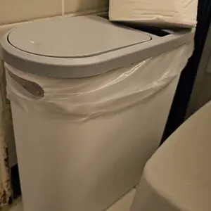 Cute little trash can. It’s convenient & compact for smaller spaces, but doesn’t look good in larger spaces due to its smaller size! Definitely worth the price for the right space.