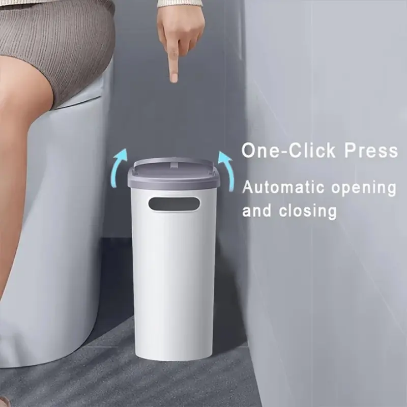 It’s the perfect size for right next to my toilet so I can throw away my larger one this helps save a lot of room in the restroom I have that’s already exceptionally small!