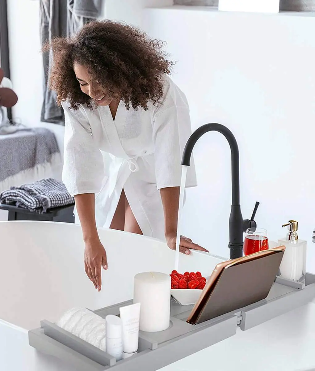 Don’t worry! This must-have bath accessory is collapsible in design! The bath caddy tray for tub neatly folds in half, making it easy to carry around or store. You won’t have to struggle to find space after use, as it will conveniently slide into any available corner of your bathroom or linen closet.