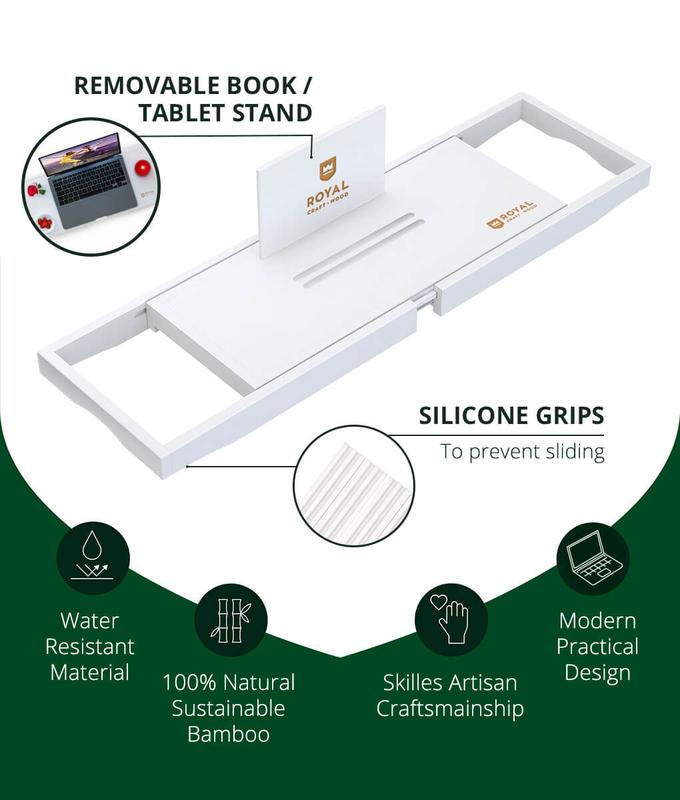 You'll be pleased to find that our bathtub organizers are constructed of sturdy bamboo wood that's been lacquered to render a waterproof surface you can count on!