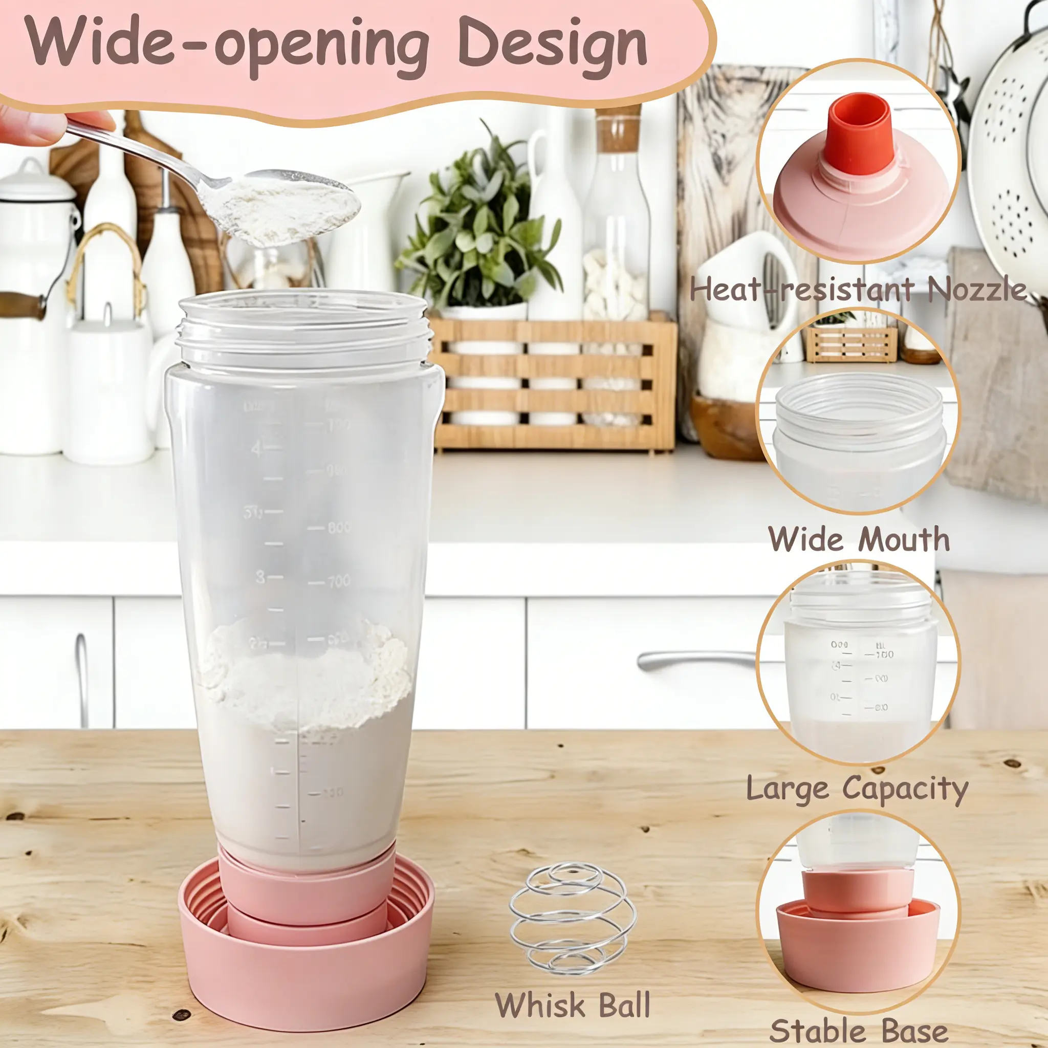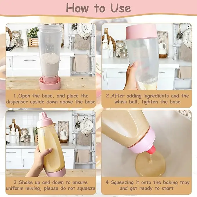 Easy-Pour Spout: This batter dispenser features a wide-mouth design for effortless ingredient pouring with minimal spills. Additionally, the silicone spout with pressure-release cap ensures smooth pouring and prevents overflow. Create various shapes, patterns, and more.