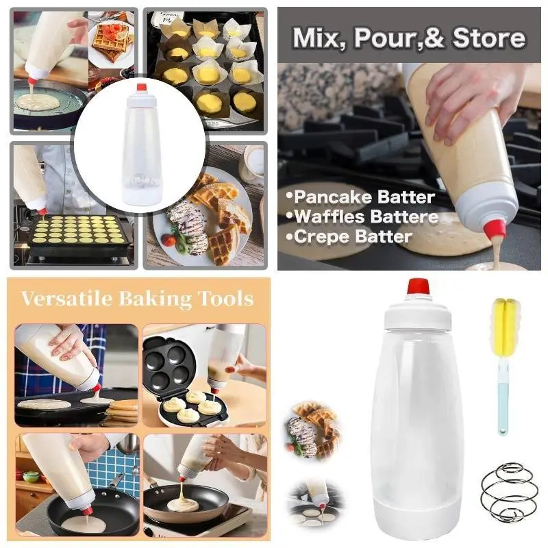 UFORU Handheld Batter Dispenser Set with Cleaning Brush and Egg Whisk Batter Mixing Bottle Package,Home Kitchen Gadget, Cookware, Pancake Batter Dispenser with Mixing Ball, Suitable for Making Smooth Batter for Cupcakes, Pancakes, Muffins, etc. Bakeware