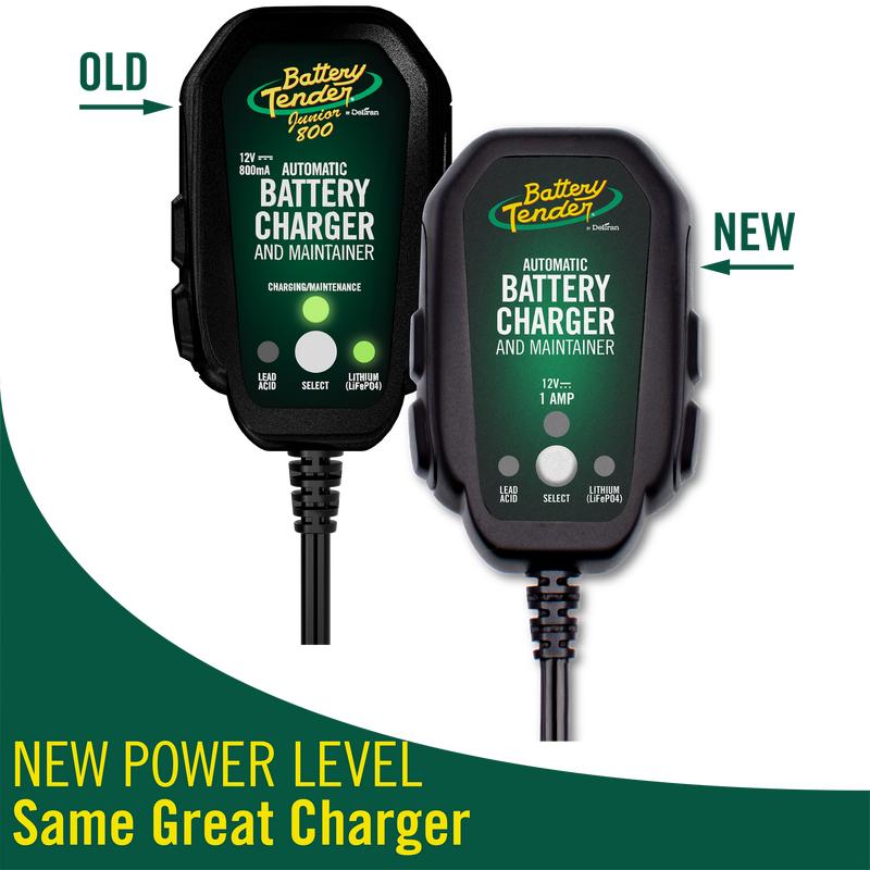 The Battery Tender® Junior is the perfect versatile charger for your powersport vehicle! This 12 Volt, 1 AMP charger is capable of switching between charging AGM, lead-acid, gel cell, flooded, and lithium (LiFePO4) batteries.