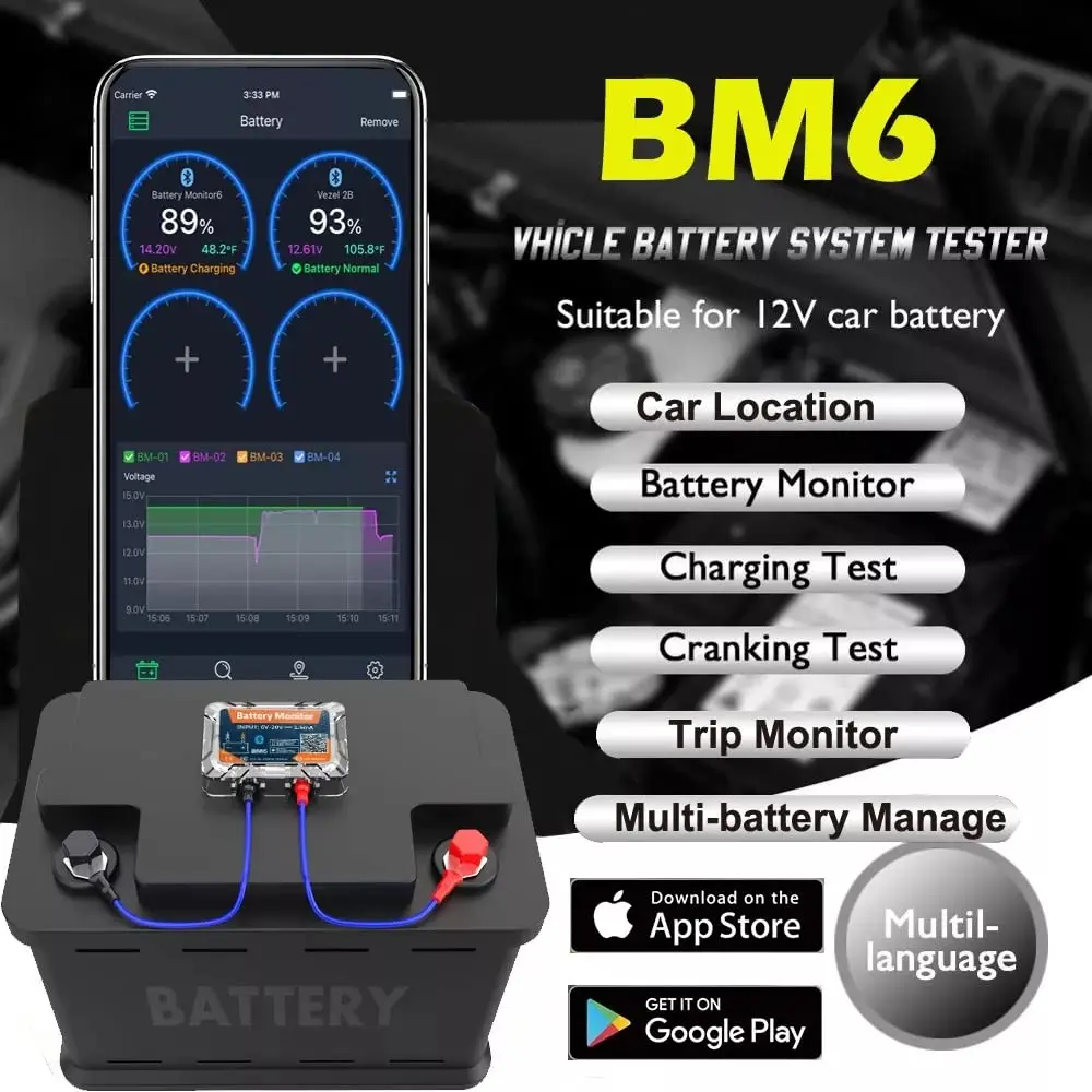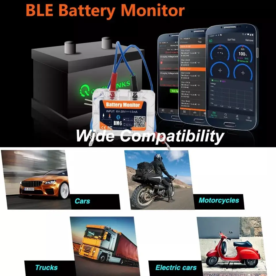 17. Works with all 12V batteries./ Wireless (Bluetooth 4.0) meter in10./ Software included for Android and iPhone./ All apps for Android and iPhone are designed by ourselves, download for free via Internet.