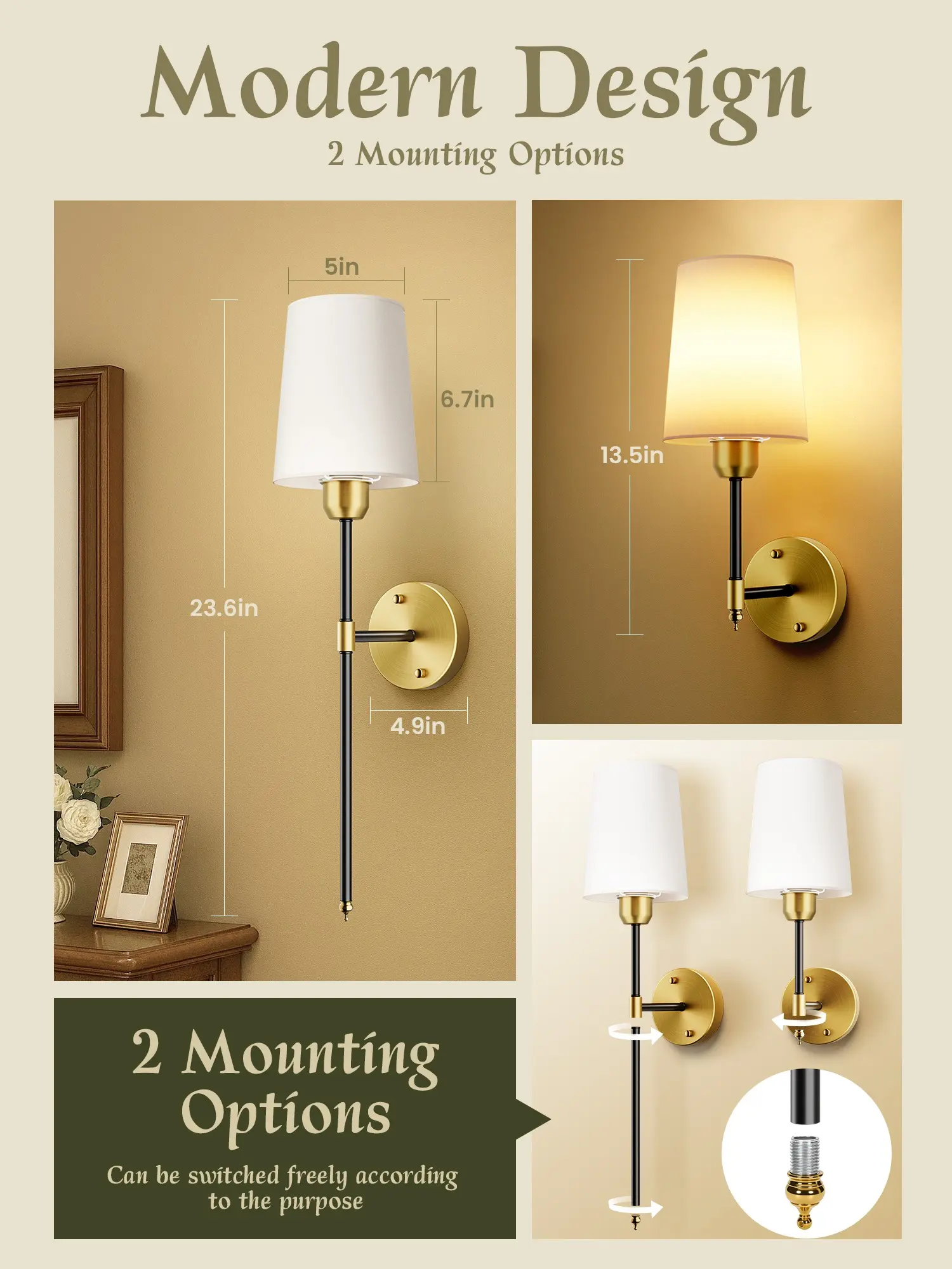 ·[Unique Design & Wide Application] With an adjustable length design, the wall sconces feature a metal frame and white fabric lampshade, perfectly showing modern and retro style. Whether placed in the living room, bedroom, hallway, kitchen, vanity, or mirror cabinet, these sconces easily elevate the look of any space.