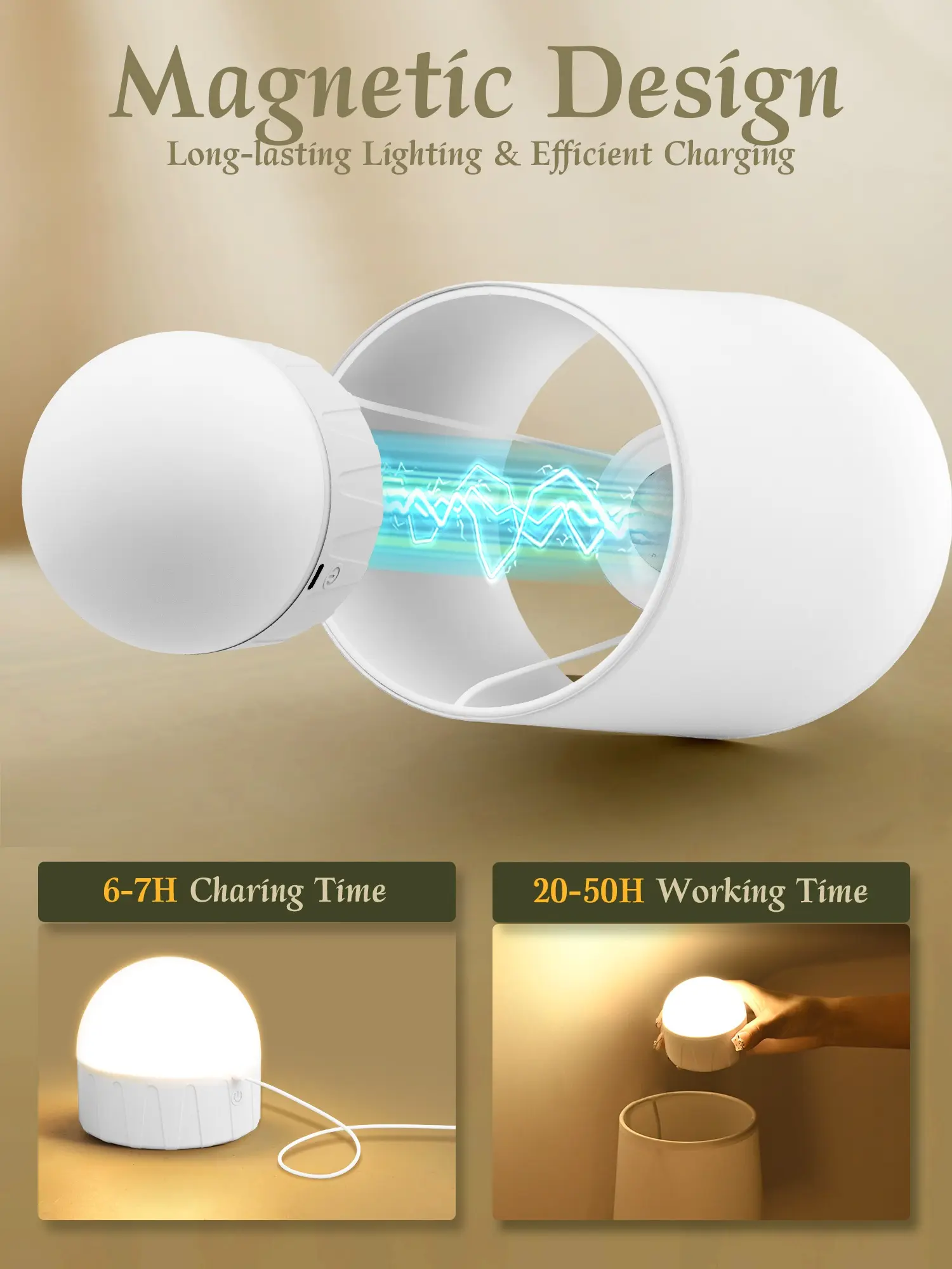 ·[Long Working Time & Magnetic Bulbs] These set of two battery-powered wall lights are completely wireless and powered by rechargeable and magnetic bulbs with USB charging ports, which makes it easy for you to charge. It takes 6-7 hours to be fully charged and provides 20-50 hours of running time.