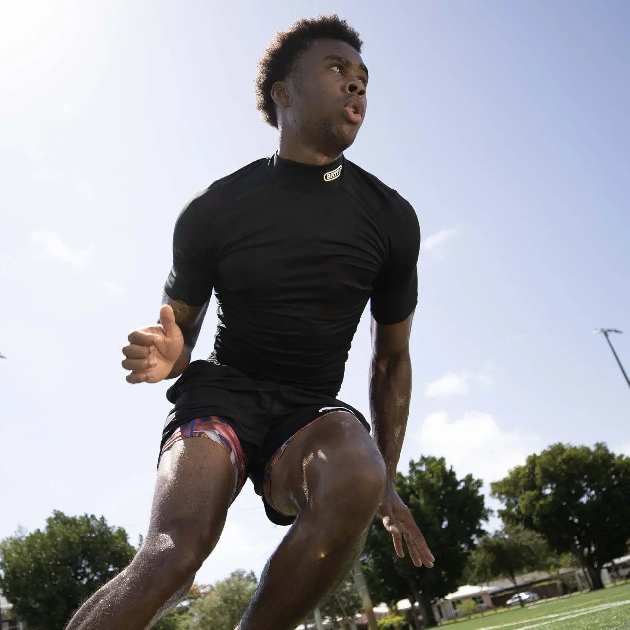 A game day must have. The Mock Neck PRO Short Sleeve Compression provides that base layer protection every athlete needs. Engineered using our newest performance material to keep you dry and side mesh panels for improved breathability.