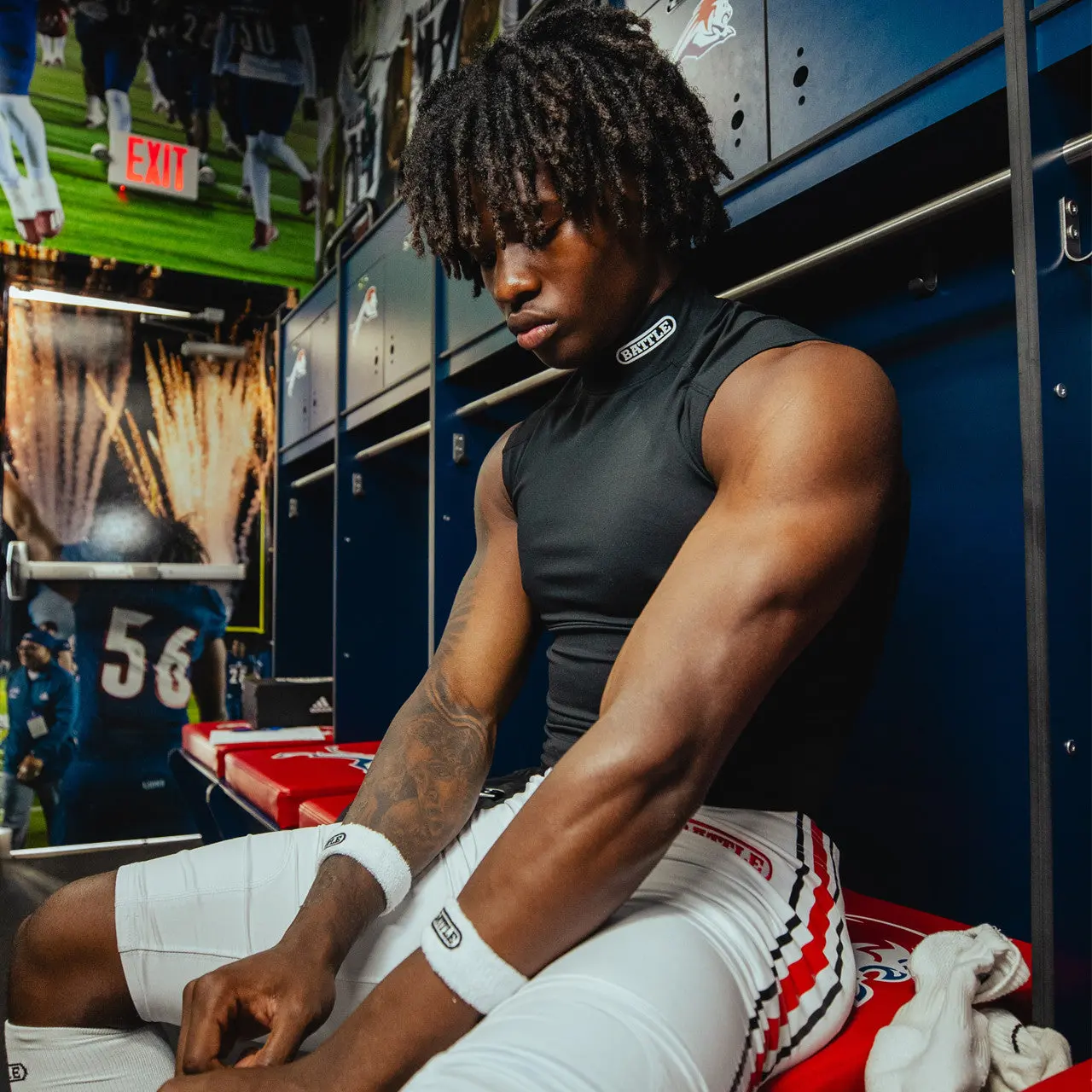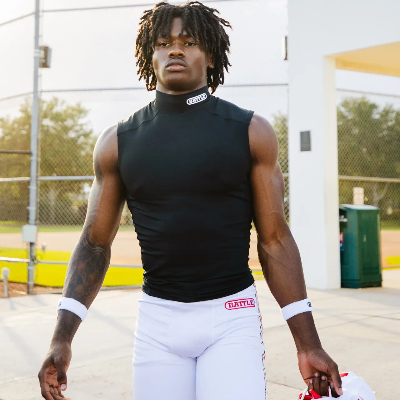 A game day must have. The Mock Neck PRO Sleeveless Compression provides that base layer protection every athlete needs. Engineered using our newest performance material to keep your dry and side mesh panels for improved breathability.