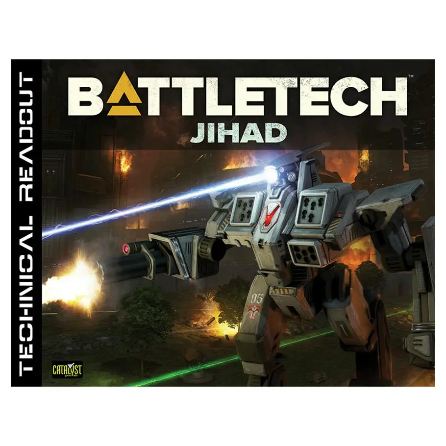The Technical Readout: Jihad expands upon previous volumes by integrating Mechs from sources including Technical Readout: 3050 Upgrade, 3055 Upgrade, and others. This collection highlights some of the most prevalent Mechs seen during the Jihad, featuring detailed illustrations, historical context, capabilities, and game statistics.