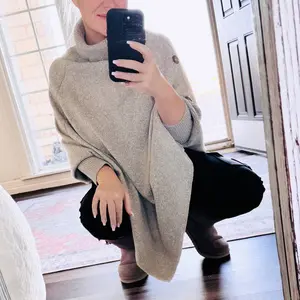 Pretty sweater. Comfy and warm. Pleased with the color.👍👍👍