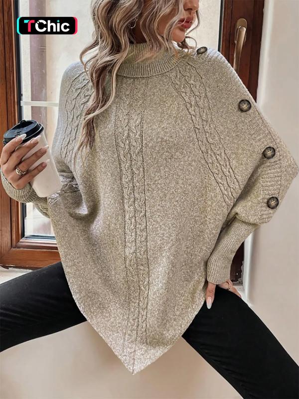 The sleeves are attached to the bottom of the sweater, so if you lift your arms, the whole thing goes up. Otherwise no complaints. Soft, comfy, cozy, beautiful color.