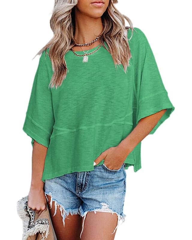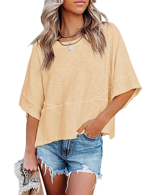 ·Festure: Womens tops dressy casual, women's 3/4 sleeve blouses, chiffon blouse, summer t shirts, round neck, basic tees, plain color, cute tops, loose fit, lightweight, off the shoulder tops, batwing tops for women