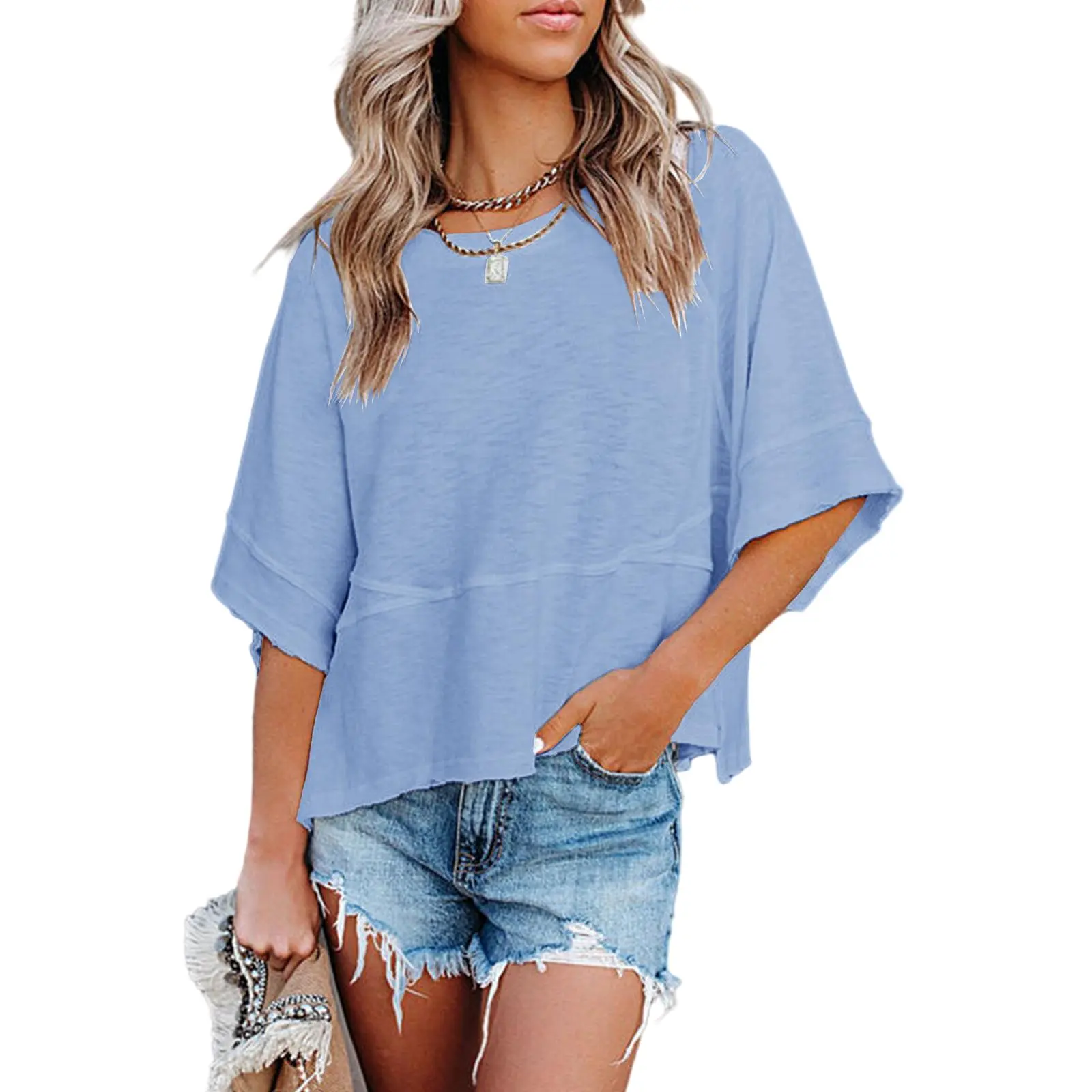 ·Festures: Womens tops dressy casual, women's 3/4 sleeve blouses, chiffon blouse, summer t shirts, round neck, basic tees, plain color, cute tops, loose fit, lightweight, off the shoulder tops, batwing tops for women
