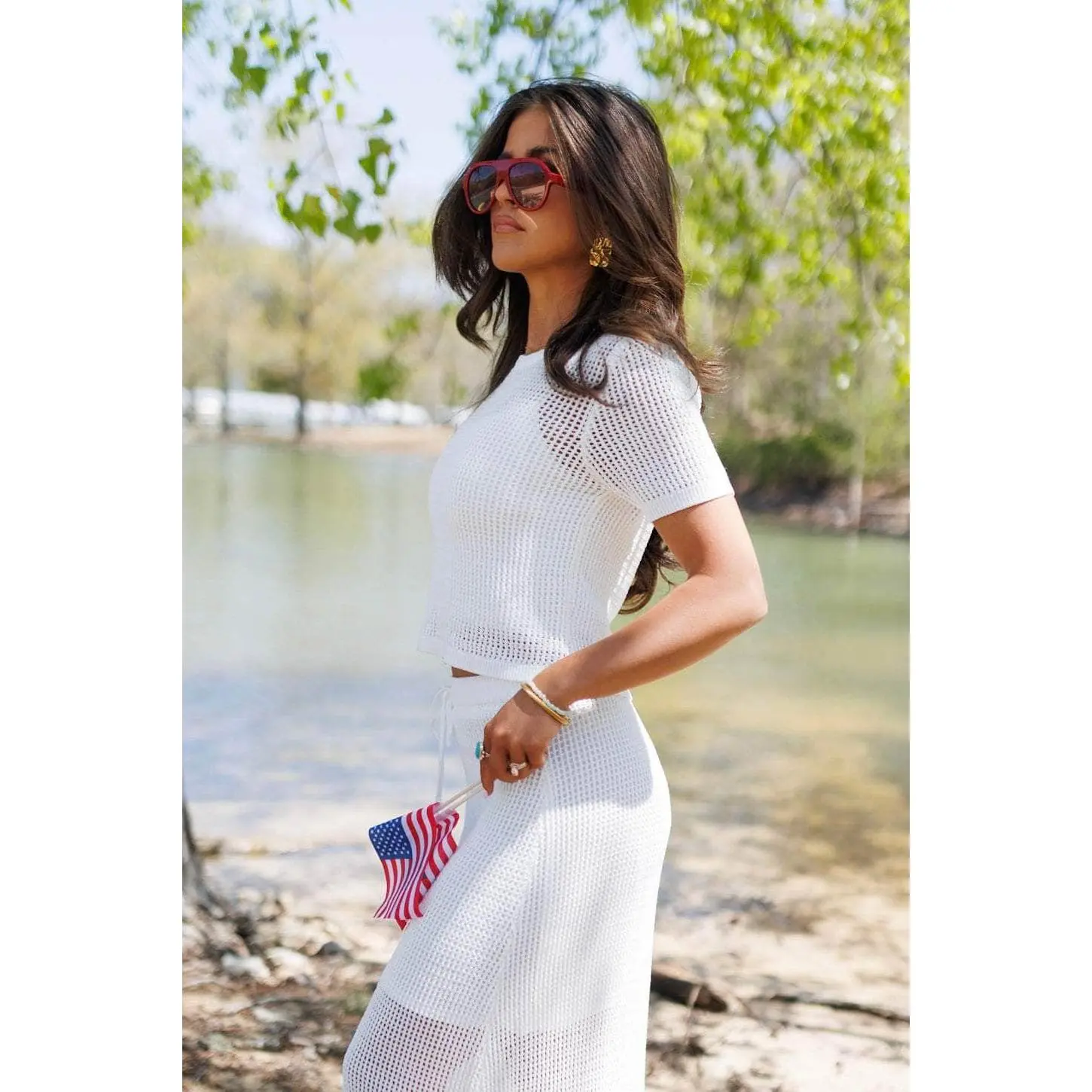 Get ready to breeze through your day with the Bayside Breeze Top. This versatile top features short sleeves and a crew neck for maximum comfort. Its unlined, knit textured design makes it stretchy and easy to pair with other pieces for a casual look or a polished style with the matching skirt. Your perfect go-to basic tee with a twist.