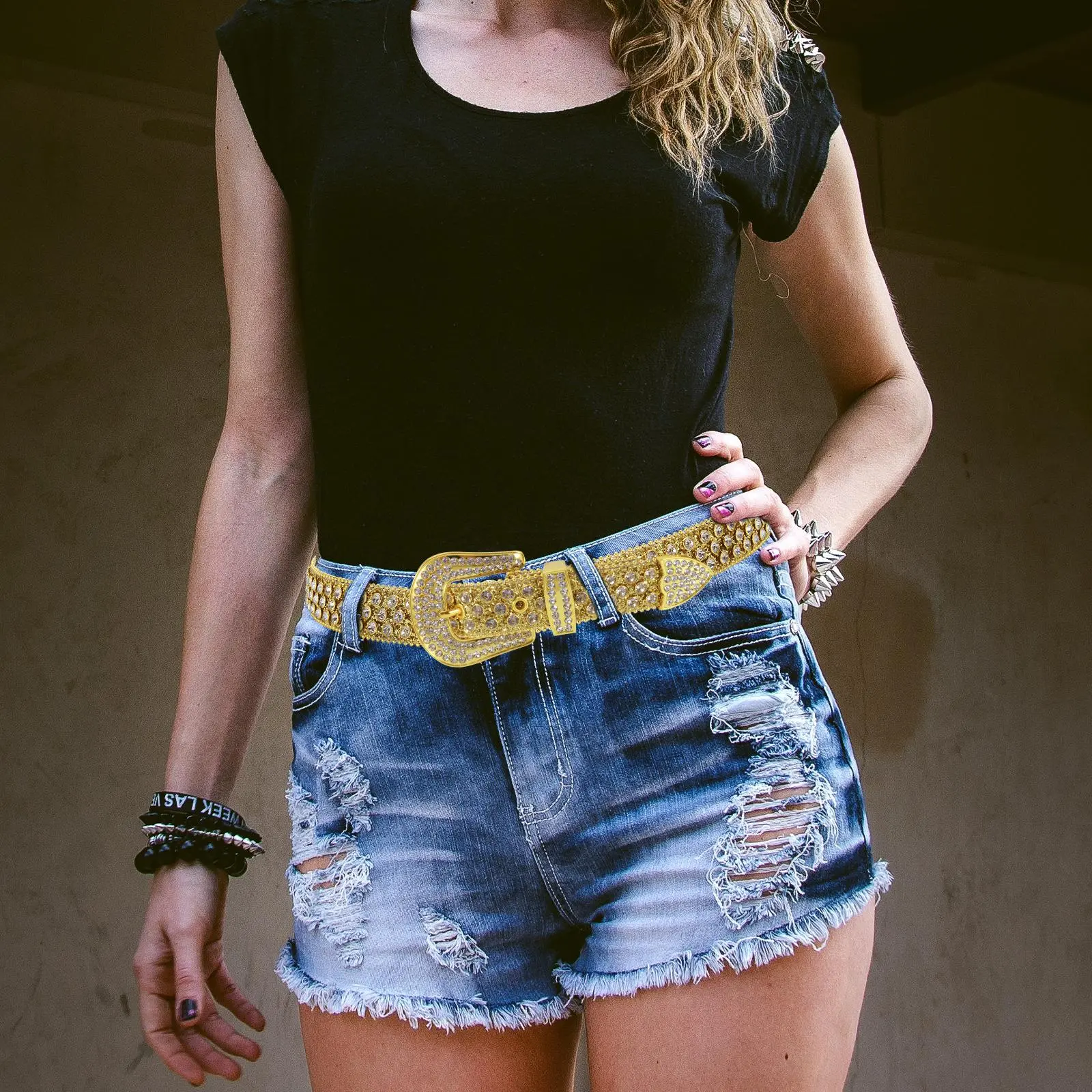 Unique punk design: This rivet belt buckle features a unique punk design and is inlaid with rhinestones, adding a touch of glamour to your outfit.