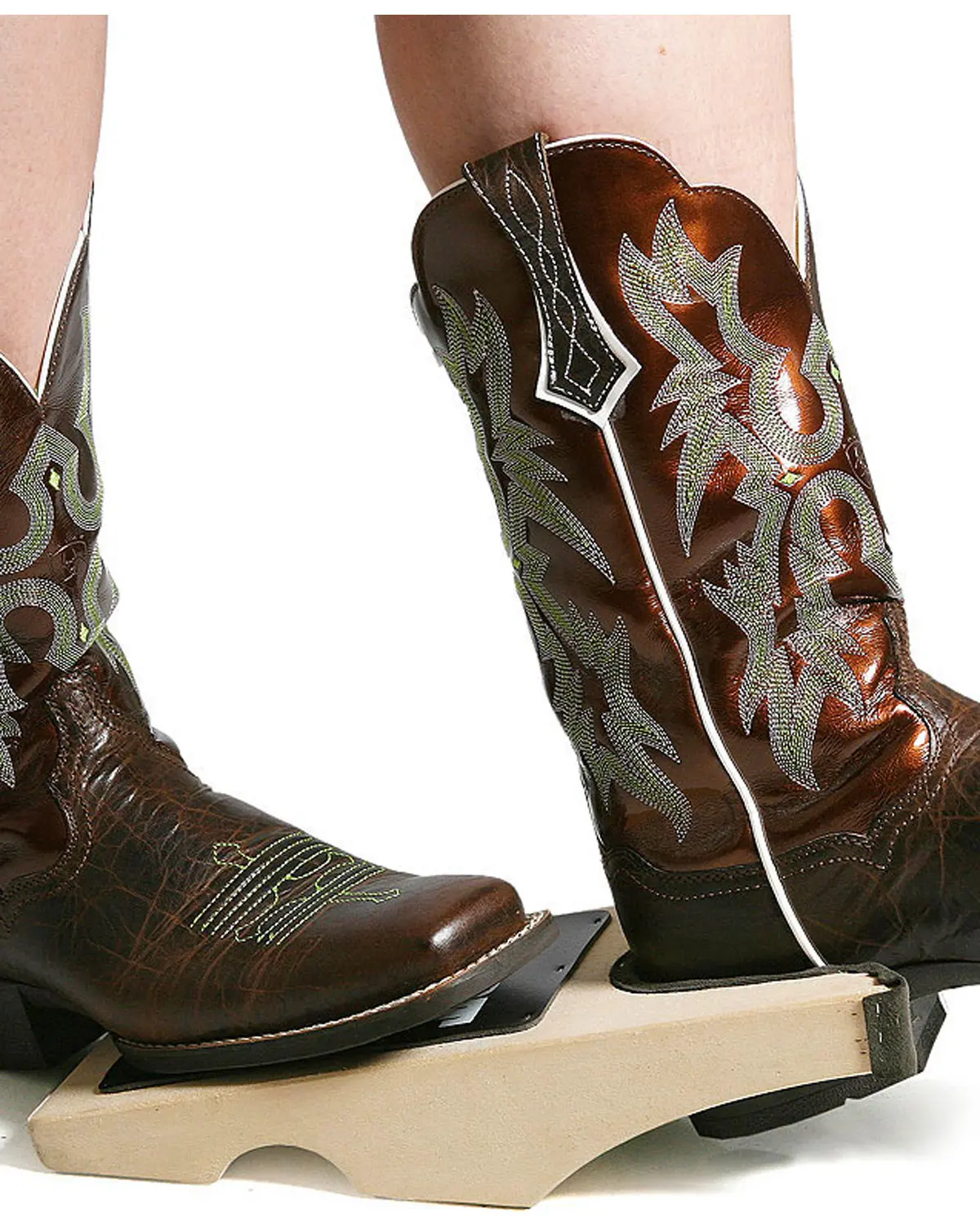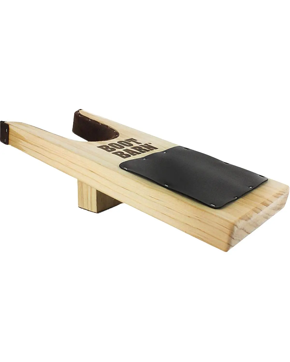 Wood base. Suede lining to protect your boot heels from scuffing. Leather pads on top and bottom for traction. Large Dimensions: 5" x 11-3/4" x 2-1/4".